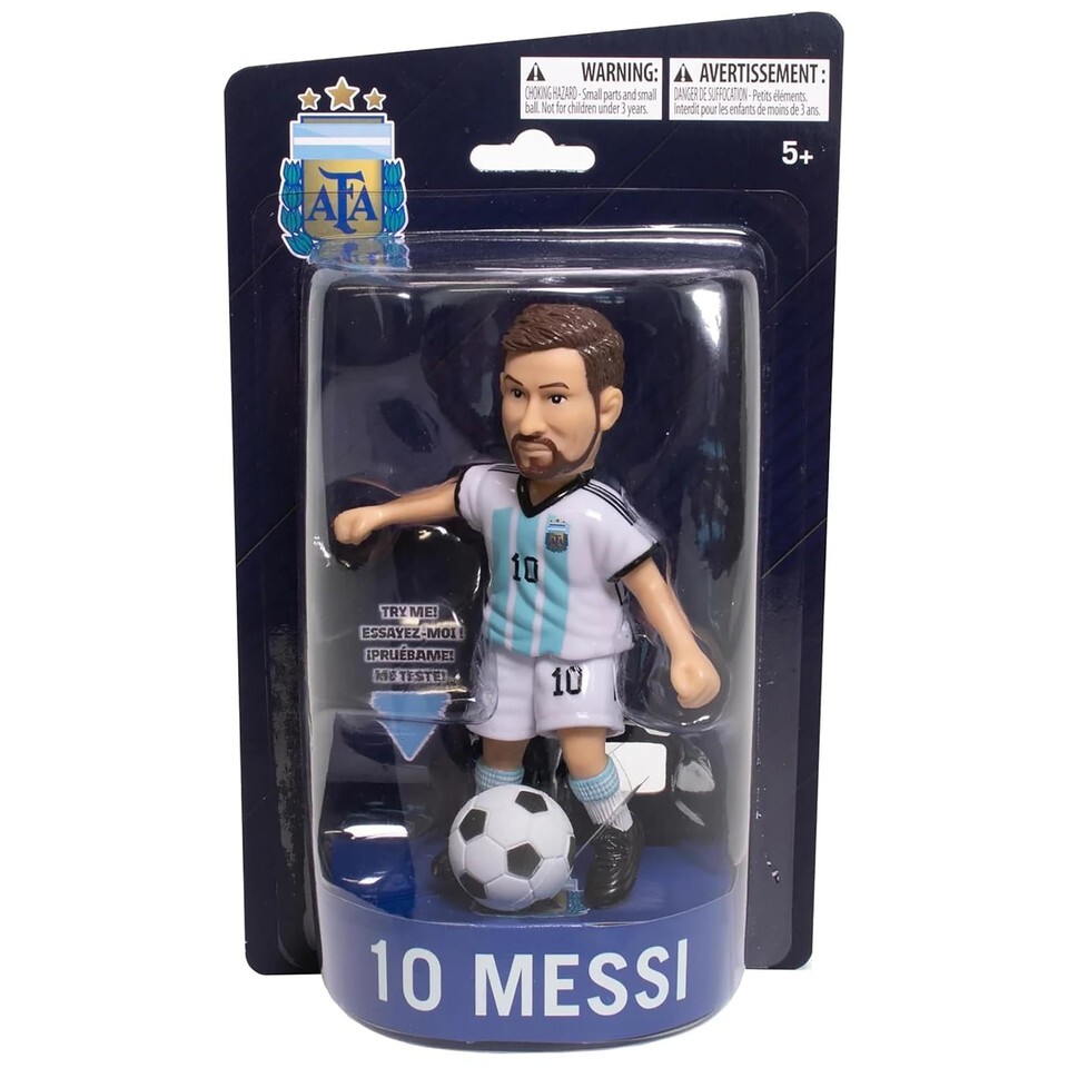Official Lionel Messi Argentina Soccer Figurine - Officially licensed Messi collectible featuring the iconic Argentina National Team kit and number 10 jersey ? great for football fans and memorabilia collectors,Poseable Action Figure with Movable Parts - Designed with rotatable arms, movable head, and poseable leg for dynamic display and play ? perfect for showcasing your favorite player in realistic poses,Perfect Display Piece for Fans Collectors - At ~4.5? tall, this figure fits easily on shelves, desks, trophies, or display cabinets ? ideal for home, office, man cave, or fan rooms,Ideal Gift for Football Lovers - Makes an amazing birthday, Christmas, or World Cup gift for Messi fans, Argentina supporters, youth players, and soccer memorabilia enthusiasts,Includes Stand for Stable Display - Comes with a detachable stand so the figure can stand upright without tipping ? ready to display right out of the box,High-Quality Licensed Memorabilia - Official club/league product with authentic team colors and details ? great for fans, collectors, and sports decor