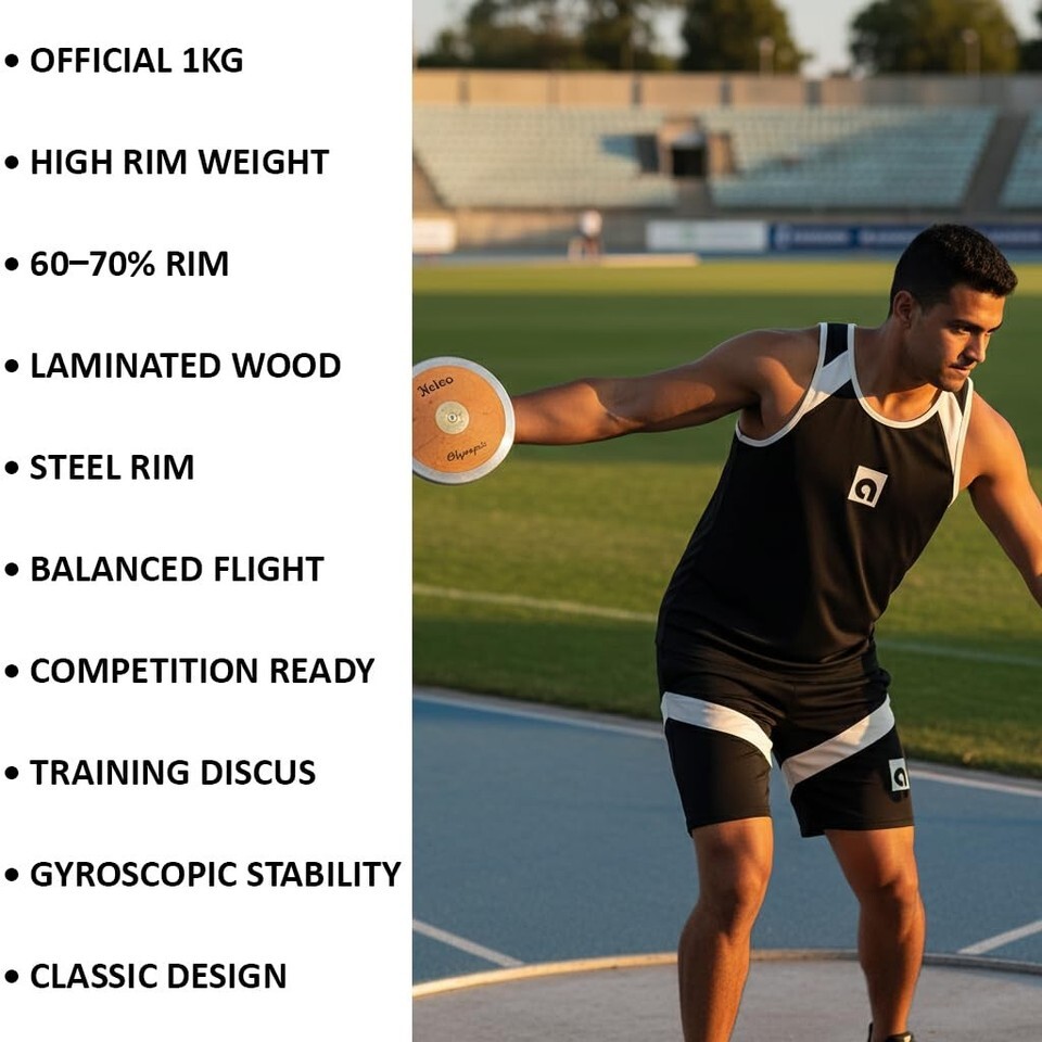 Wood Discus 1kg - Competition & Practice, Steel Rim, 60-70% Rim Weight