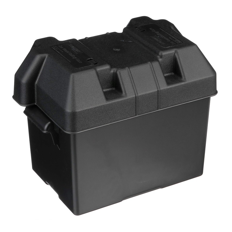 This black molded high density polyethylene battery box provides a sound solution to securing a single group 24 battery and containing accidental acid spillage. Lid allows easy access around battery cables and wires. Complete with hold down strap and mounting hardware. Seachoice is committed to delivering quality marine accessories and OEM replacement parts to satisfy fishing, boating and watersports enthusiasts worldwide. Seachoice is run for and by boaters offering a wide-ranging product line while remaining affordable.