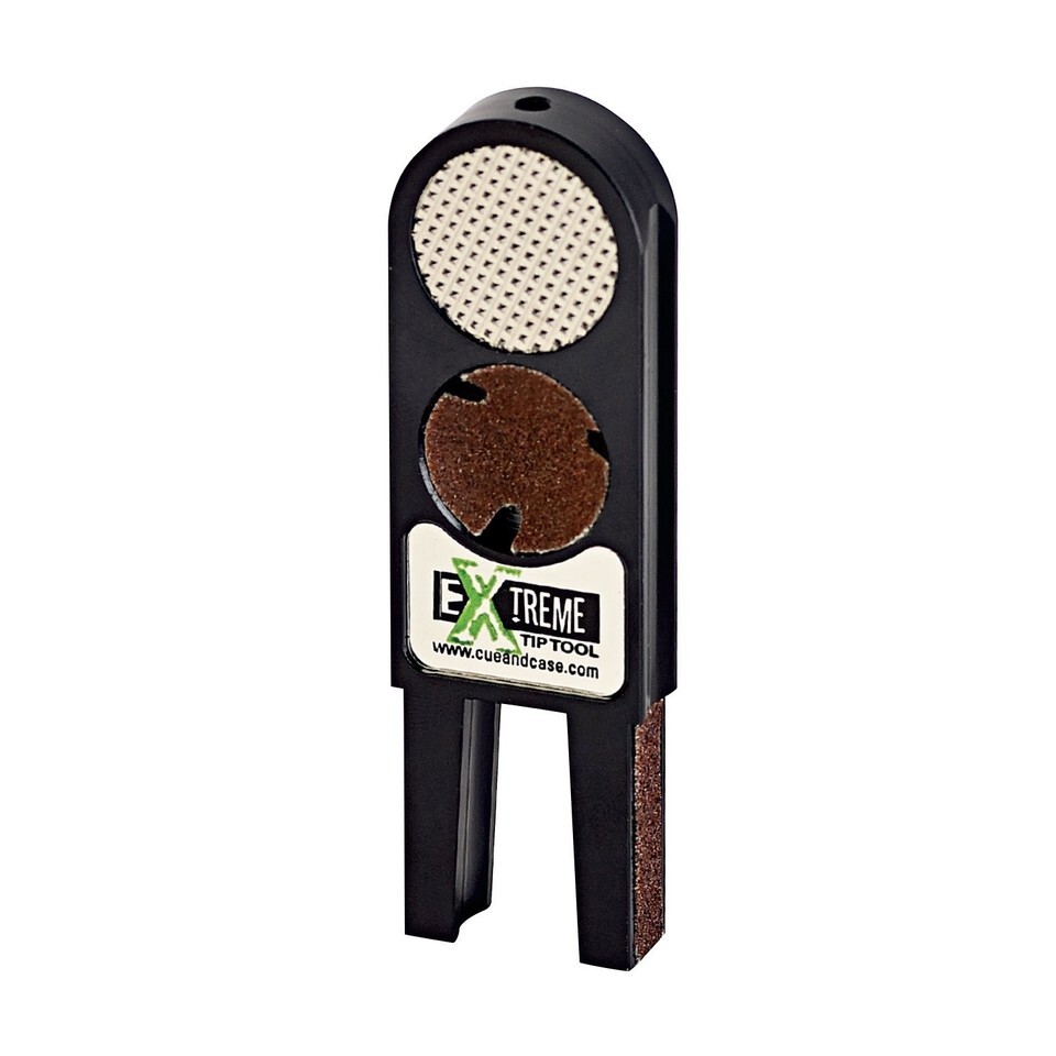 Get everything you need to play your best game of pool with the Extreme ETT 5-in-1 aluminum tip tool. This tool packs five of your most common pool cue tip tools and packs them into a solid aluminum body small enough to fit into your pants or cue case pocket. Available in 5 colors. Replacement abrasive pads are also available. Extreme 5-in-1 Tip Tool Features Tip Tapper - Creates pockets and scuffs on your pool cue tip surface for increased chalk absorption. This tool can also be used to scuff a badly glazed tip. Dime Radius Shaper - Shapes and scuffs your pool cue tip to a perfect dime (9.1mm) radius. Nickel Radius Shaper - Shapes and scuffs your pool cue tip to a perfect nickel (10.5mm) radius. Tip Trimmer - Corrects mushrooming by trimming your pool cue tip to within 0.010" flush with the ferrule. Tip Burnisher - Hardens and polishes the sides of your pool cue tip flush with the ferrule to reduce mushrooming. Available Colors Black