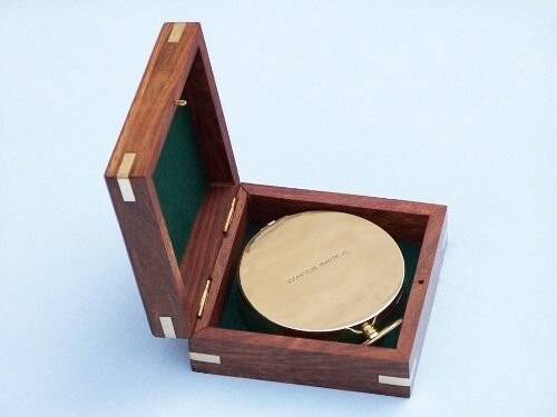 From the Manufacturer The Hampton Nautical Pocket Compass is truly a great gift to any nautical enthusiast in your life. This timeless navigational piece is solid brass and can be stored in one's pocket or in the solid rosewood box. Press the push button to reveal the compass. The compass needle is accurate, quick and responsive. The cap can be closed at any time. This solid brass compass comes with a rosewood box that has the Hampton Nautical anchor with rope logo embedded into the top. The box is a smooth and polished finish wood with a green felt on the inside to protect the compass.