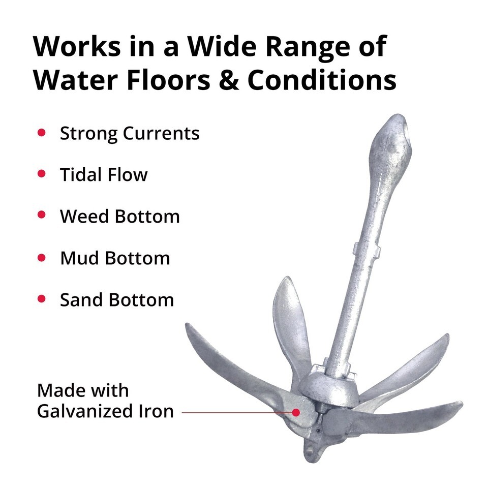 Lightweight yet powerful, this Grappling Anchor is made of galvanized iron and will provide years of reliable service, firmly hold small boats in place wherever you go. The SeaSense Grappling Anchor works effectively in strong currents and tidal waters, as well as sandy, muddy and weedy bottoms; note you must use an anchor chain and shackles for proper holding. Made to last, this anchor will secure your boat for years. This boat accessory is the perfect Christmas or holiday present or birthday or Mother or Fatheras Day gift. At SeaSense, we aim to help our customers save time and have more fun on the water, without breaking the bank. Weave been providing innovative marine and trailer products since 1984;