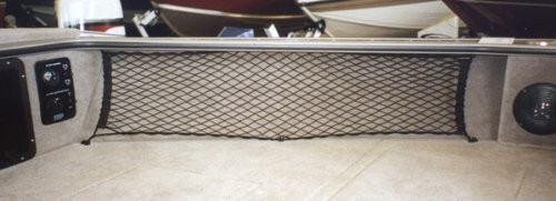 Rig Rite Manufacturing Marine 32" Boatgo Storage Net with 8 Hooks and Screws stores life jackets, clothes and tackle. It keep items from blowing out of your boat. It is available in 2 different sizes to fit any boat. The width stretches from 10 inches to 18 inches.