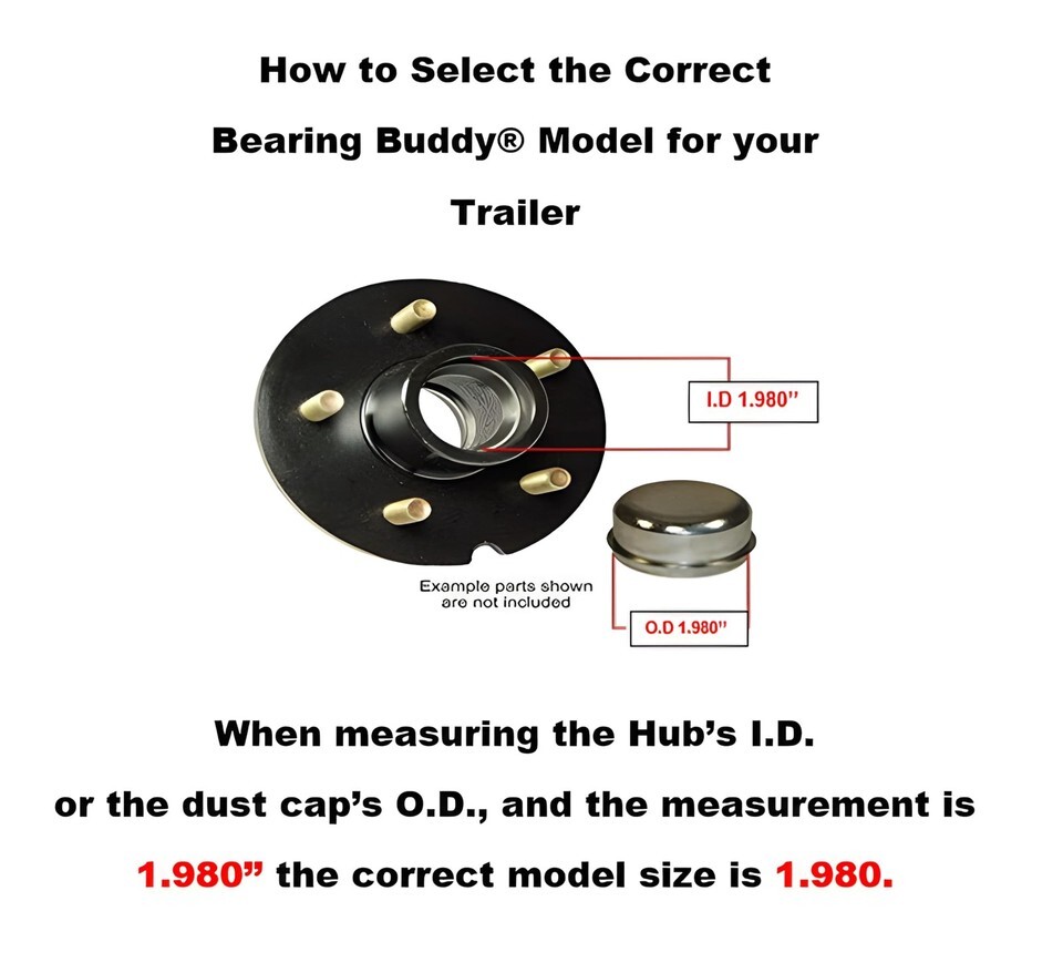 Bearing Buddy Bearing Protectors provide protection against damage from water and dirt entering the wheel bearings and make lubricating bearings a snap. Model No. 1980. Chrome plated. For use with 1.980"" (50.29 mm) hub bore. Outer Bearing Cone: L-44643, L-44649, L-44640. Outer Bearing Cup (race): L44610.