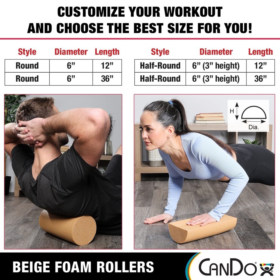 Product Description The CanDo Beige Round PE Foam Roller is terrific for muscle restoration, massage therapy, sport recovery, and physical therapy. This roller offers a ton of versatility because it can be used to improve positioning, balance, body awareness and coordination and strengthening activities. As seen in clinics and gyms nationwide, this roller is ideal for stretching and rehabilitating the hips, legs, back, neck and shoulders. This foam roller is also a great massager. Turn it into your own personal massage therapist after an intensive workout. Easy to clean, this is a commercial grade therapy roller available for home, personal use. This roller is great for increasing blood flow and improving blood circulation. While effective alone, it works great in tandem with other equipment like the CanDo exercise bands, tubing, weights or balls. It also works great on loosening and unknotting tight muscles while restoring flexibility. This roller is ideal for muscle posture re-education, spinal stabilization and other motion and strengthening exercises. Suitable for adults and children, this roller fits all body types and is uniquely designed to fit the needs of both beginners and professional athletes alike. Manufacturer Contact Information 18004312830
