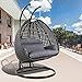 LeisureMod Wicker Hanging 2 Person Egg Swing Chair with Outdoor Cover (Charcoal)