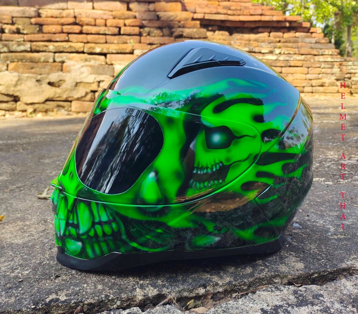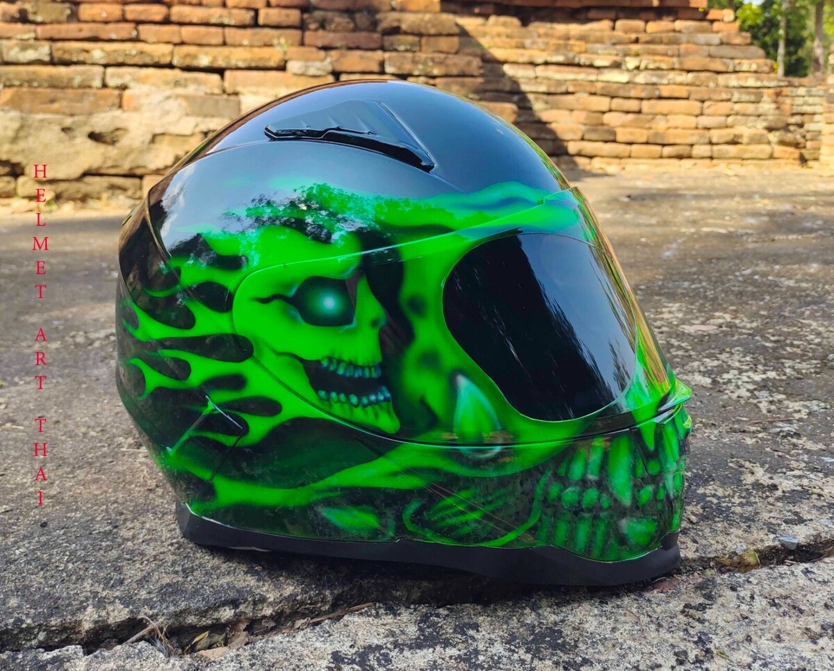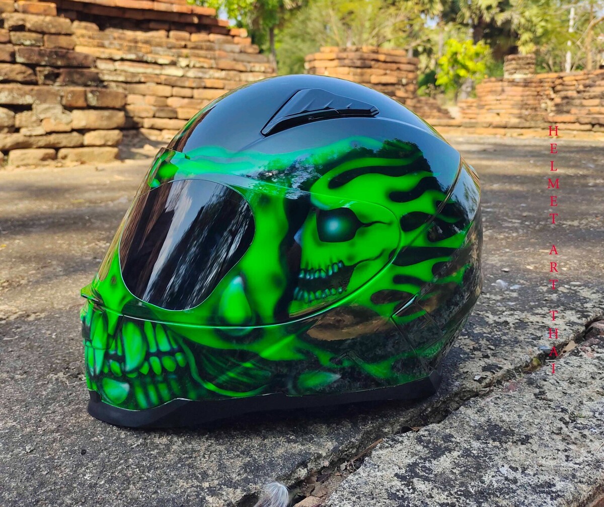 CASQUE MOTO GREEN CUSTOM AIRBRUSHED