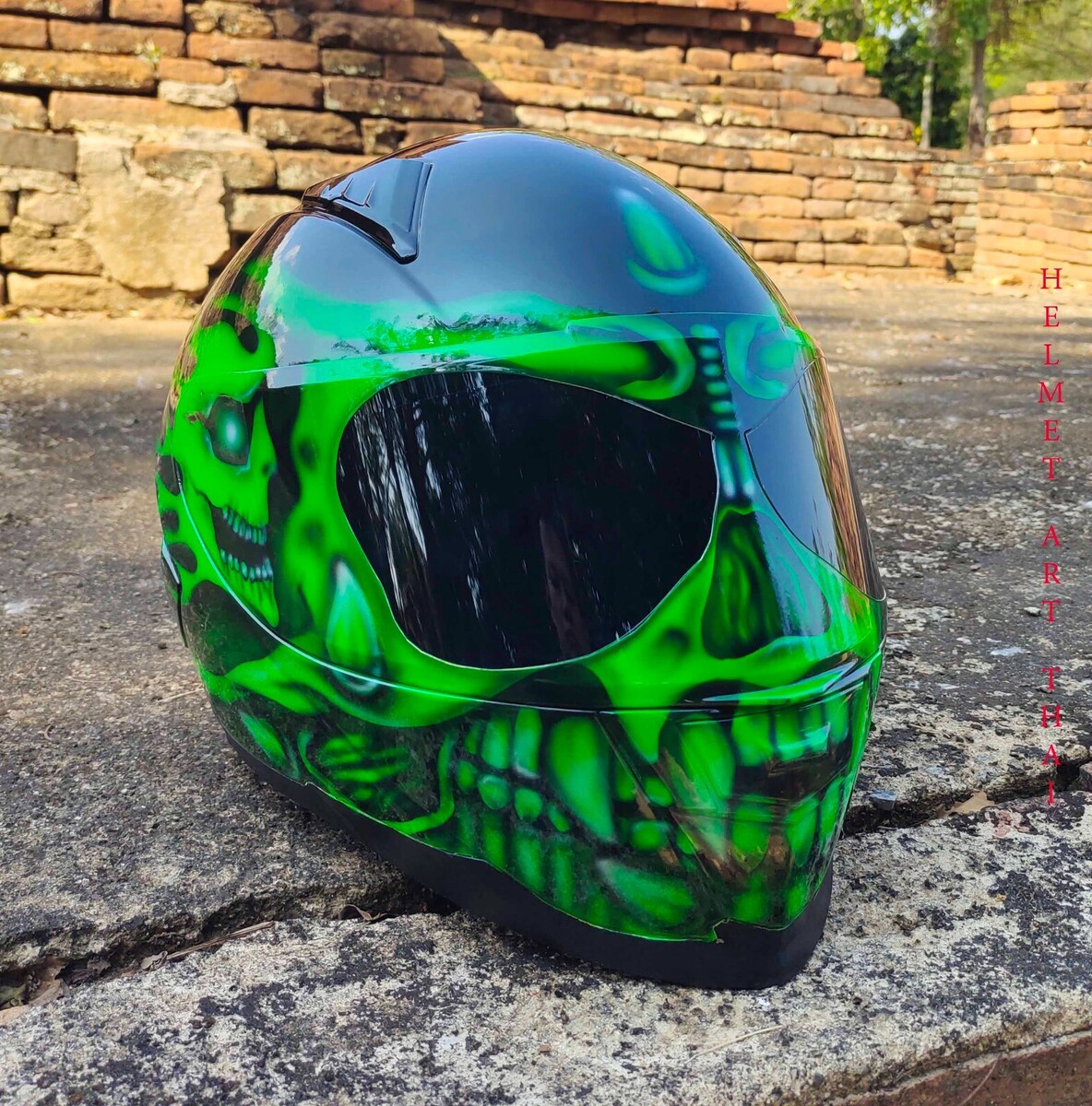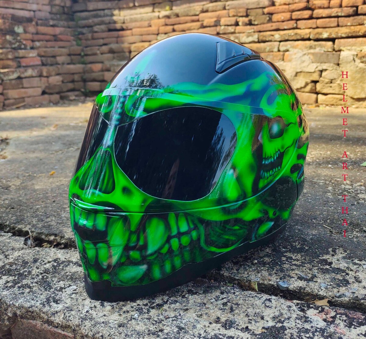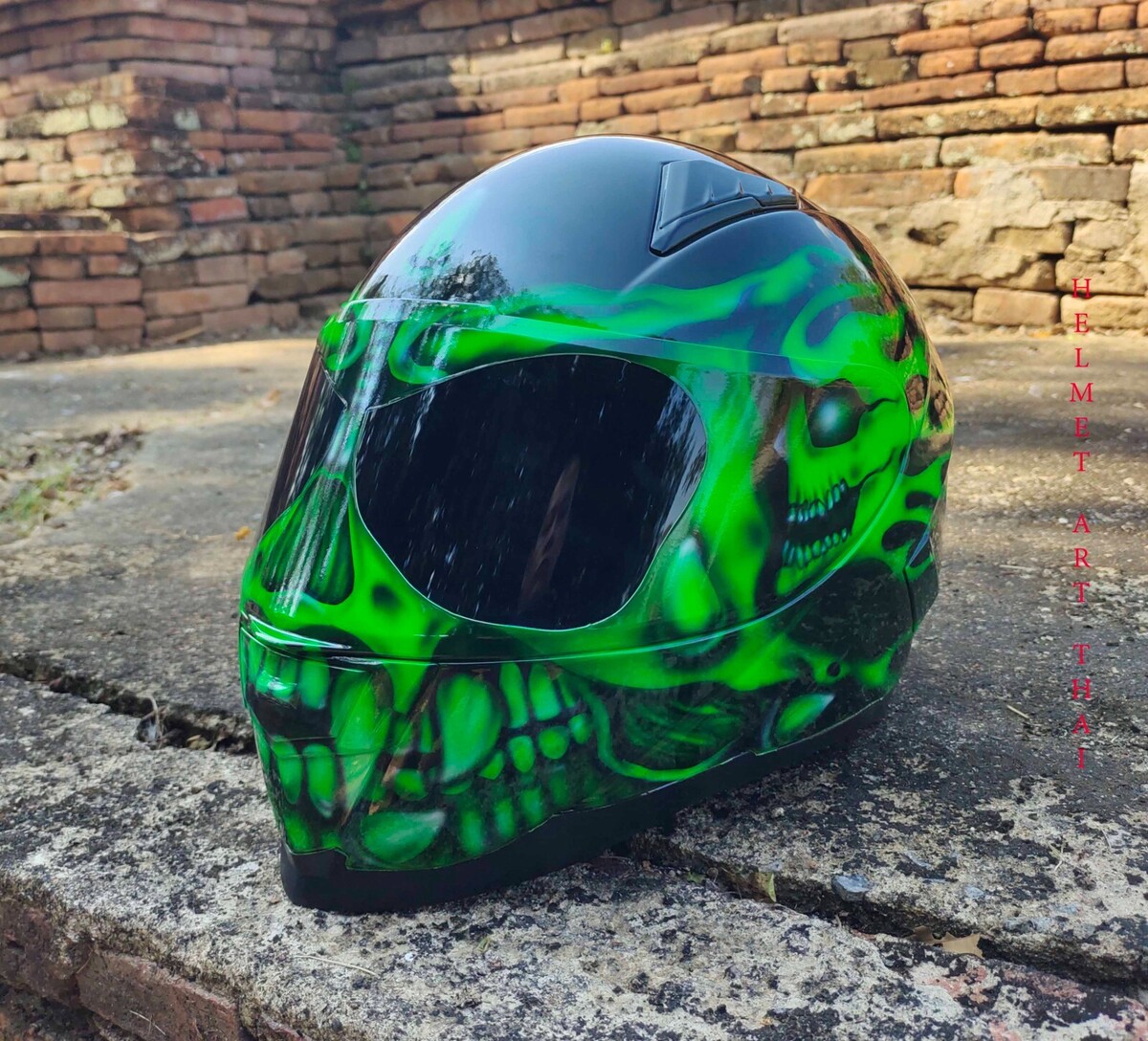 CASQUE MOTO GREEN CUSTOM AIRBRUSHED