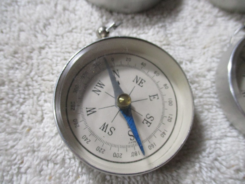 6 Vintage Novelty TOY Compass Keychains 1.75'' dime store gumball tin Japan