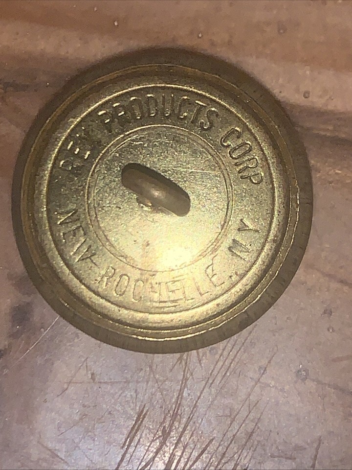 This vintage United States Army button measures approximately 1-1/8" in diameter and is made of brass tone metal. It features the Great Seal of the United States and bears the brand of Rex Products Corp from New Rochelle, New York. This original piece represents a piece of American military history and would be a valuable addition to any collection of military memorabilia or vintage buttons.