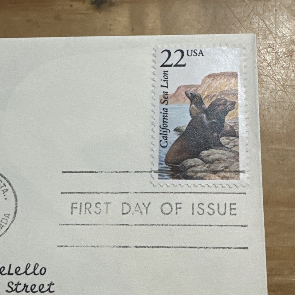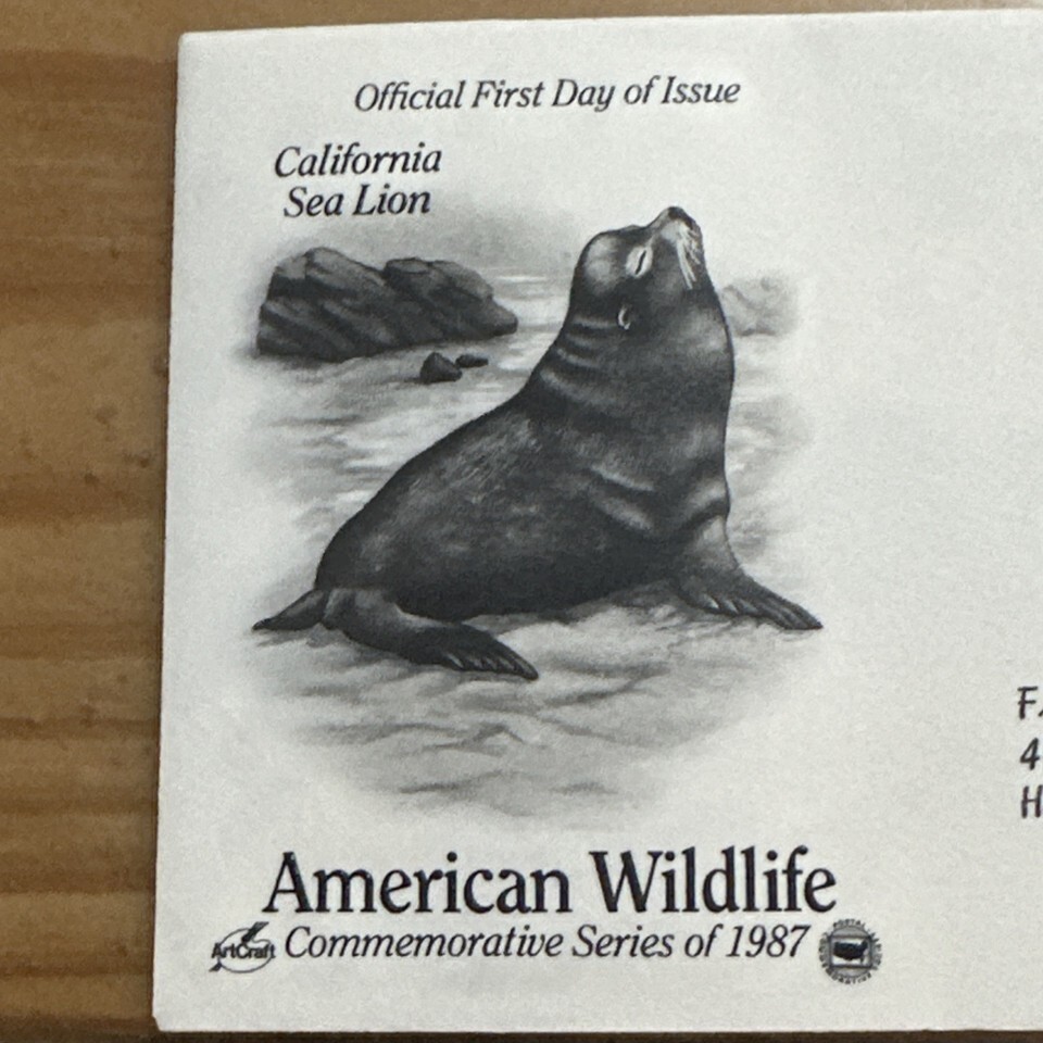 The product is a First Day Cover featuring a US stamp with the California Sea Lion design from the American Wildlife series issued in 1987. This vintage collectible item is from the United States and is of good quality, with a grade of G/VG. It is uncertified and would be a valuable addition to any stamp or wildlife memorabilia collection. The sea lion motif on the stamp reflects a unique and iconic aspect of American wildlife, making it a desirable piece for collectors and enthusiasts alike.