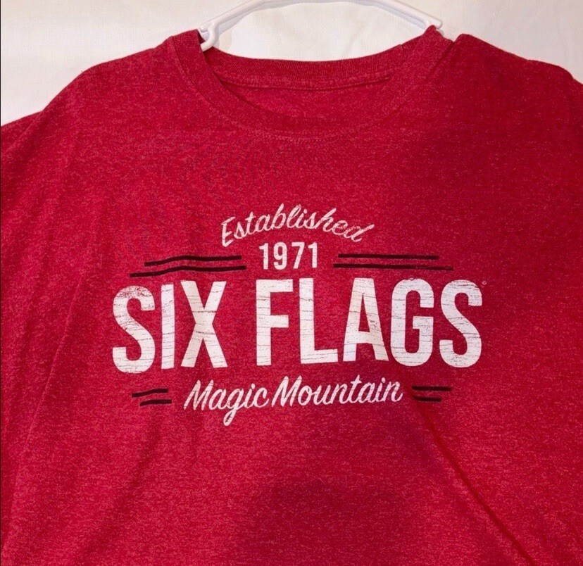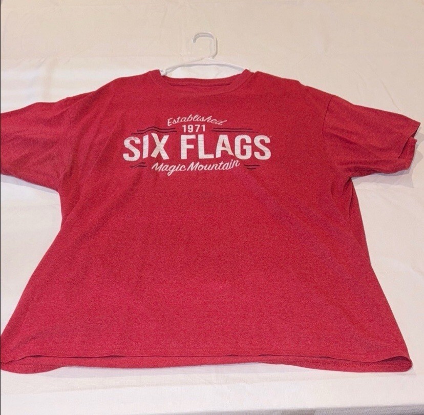 Six Flags Coaster Magic Mountain T Shirt Men's Short Sleeve Red XL