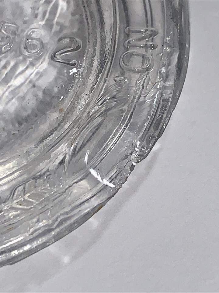 Vintage Presto glass canning jar lid Pat. Re. 17562 21 In Center And Chipped Rim