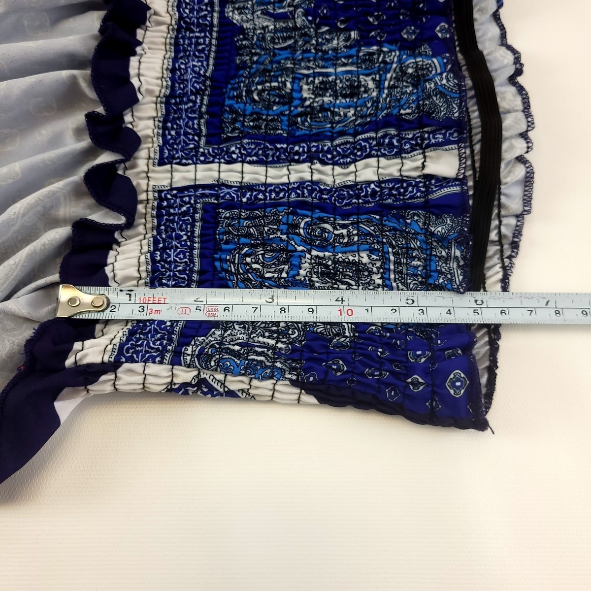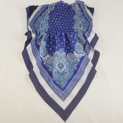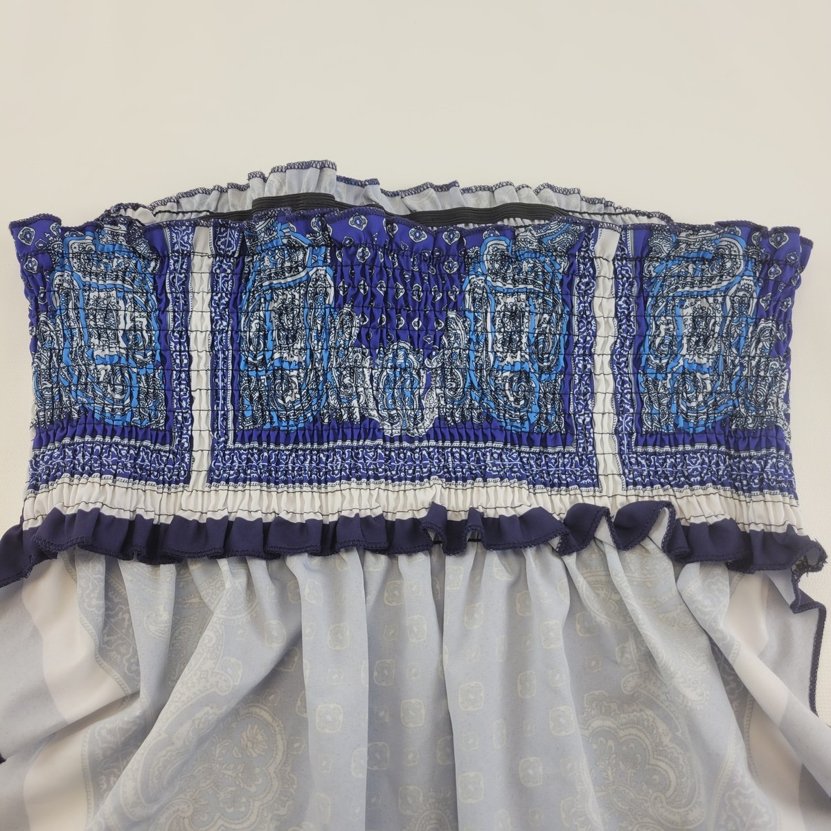Shein Womens Smocked Bandana Tube Top L Blue Paisley Boho Handkerchief Hem