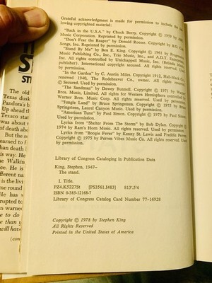 Early edition, gutter code T51. The first printing of ?The Stand? has a T39 gutter code. Not a book Club edition. A second edition printed a few weeks after the first edition.