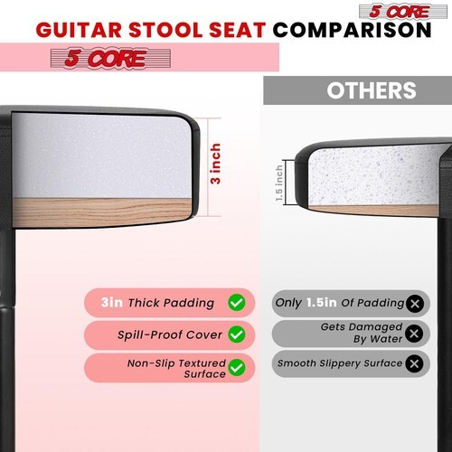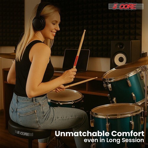 Experience unmatched performance with the 5 Core drum throne. Its 3 inch thick, 12 inch wide padded seat provides lasting comfort for long drumming sessions. This adjustable drum throne seat ranges from 20.5 to 22 inch, ensuring perfect playing position. The professional drum throne supports up to 330 lbs, making it ideal for both adults and kids.