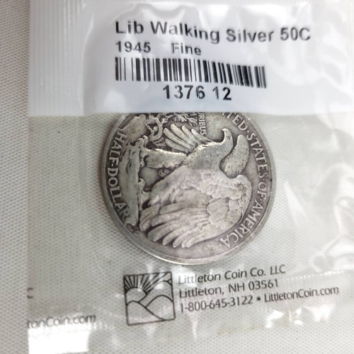 1945 Walking Liberty Half Dollar Silver 50 Cent Fine. Shipped with USPS Ground Advantage.