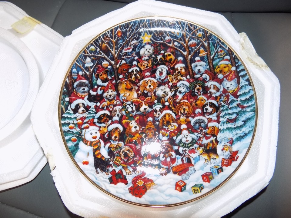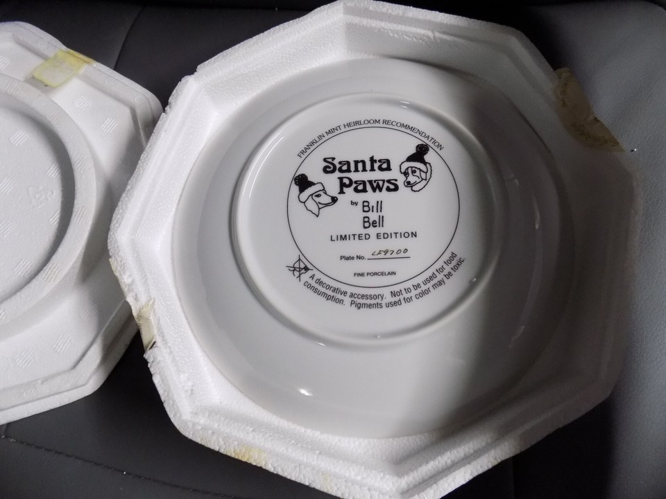Franklin Mint Santa Paws by Bill Bell Ltd Ed Christmas Dogs Plate NEW