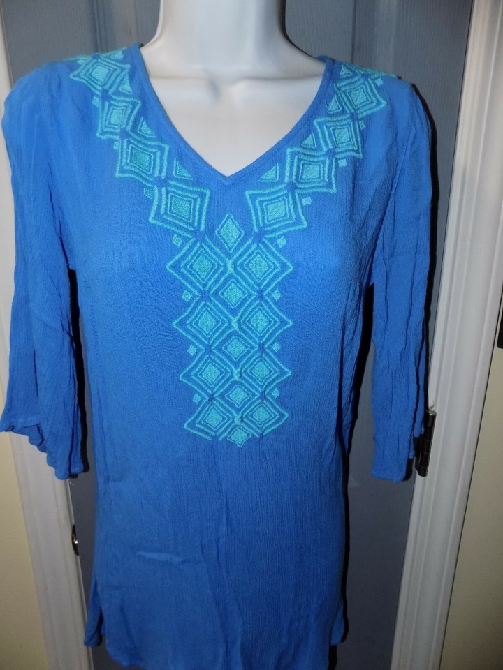 Lilly Pulitzer Blue Embroidery Swimsuit Beach Pool Rayon Coverup Size XS Women's
