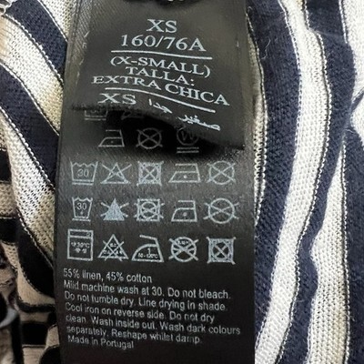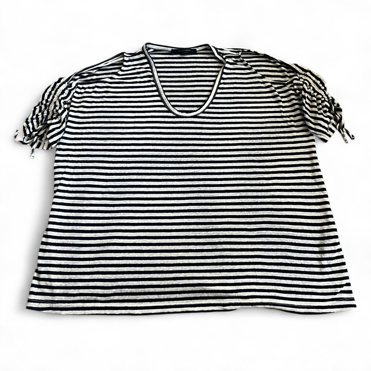 AllSaints Women’s Harper Striped Cold Shoulder T Shirt Sz XS White Navy Drapey