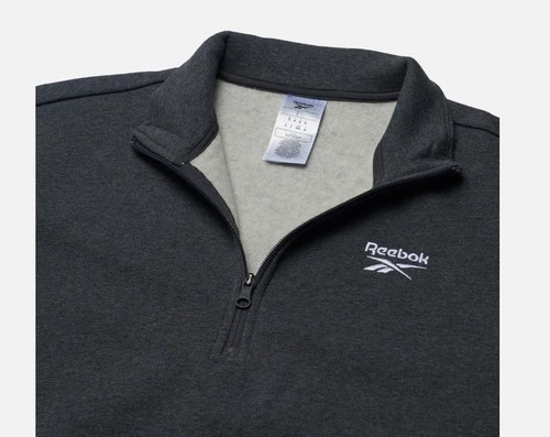 Reebok Mens Identity Quarter-Zip Fleece Sweatshirt Dk Grey Heather XL Reg-Fit