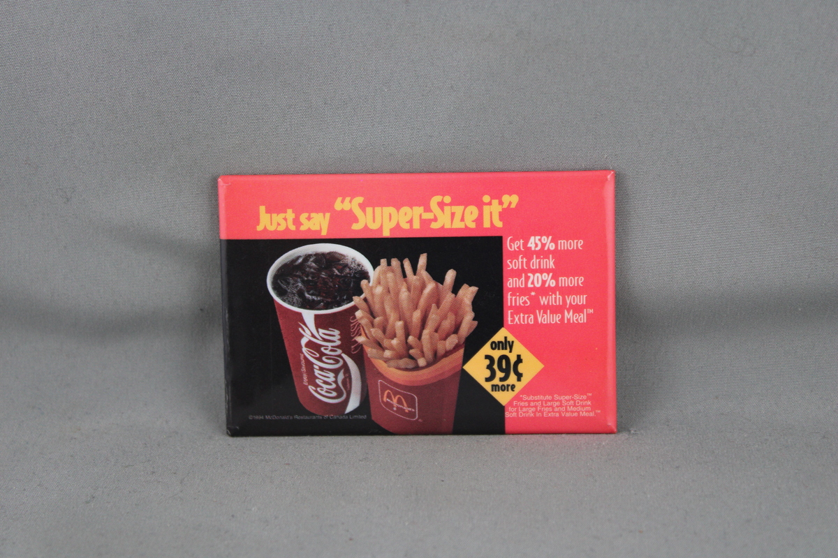 Vintage McDoanalds PIn - Just Say Supersize It 39 Cents - Celluloid Pin