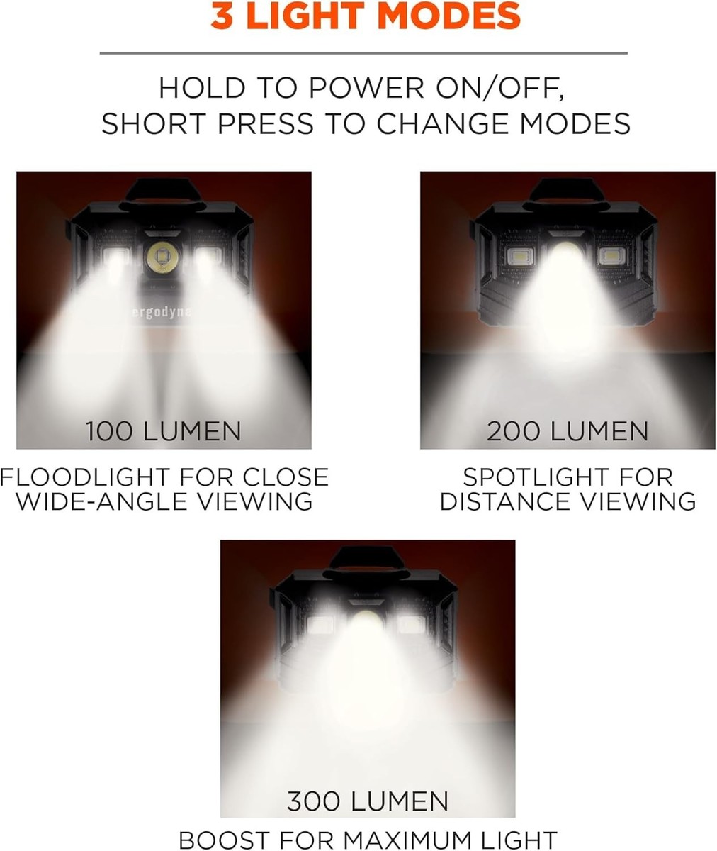 Portable 300 Lumens Rechargeable LED Hard Hat Light with Magnet & Pivoting Mount