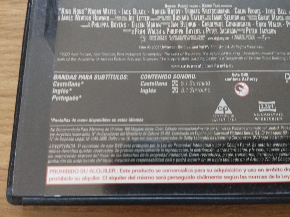 King Kong Adrien Brody Peter Jackson - DVD Regione 2 Spagnolo Inglese ESP 3T