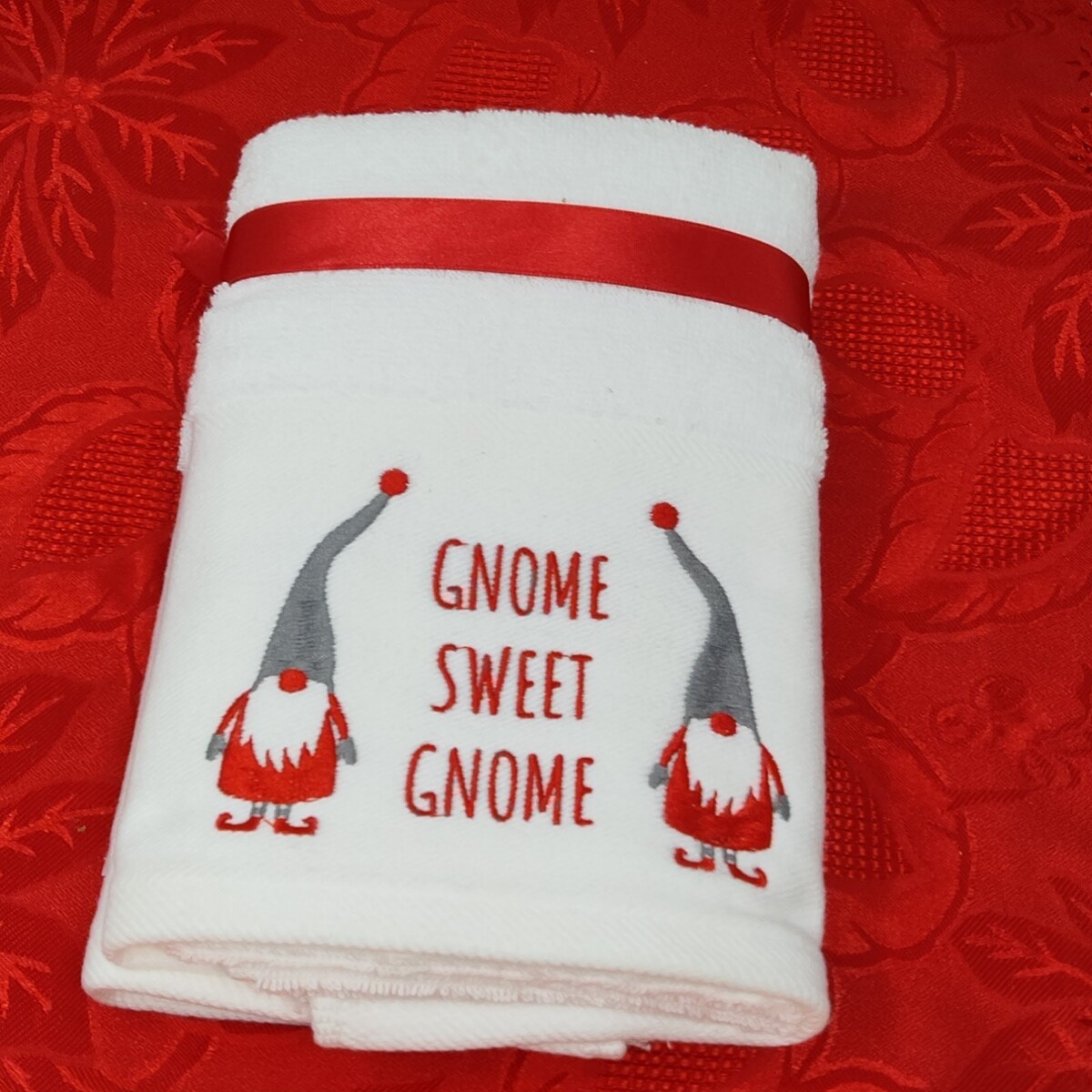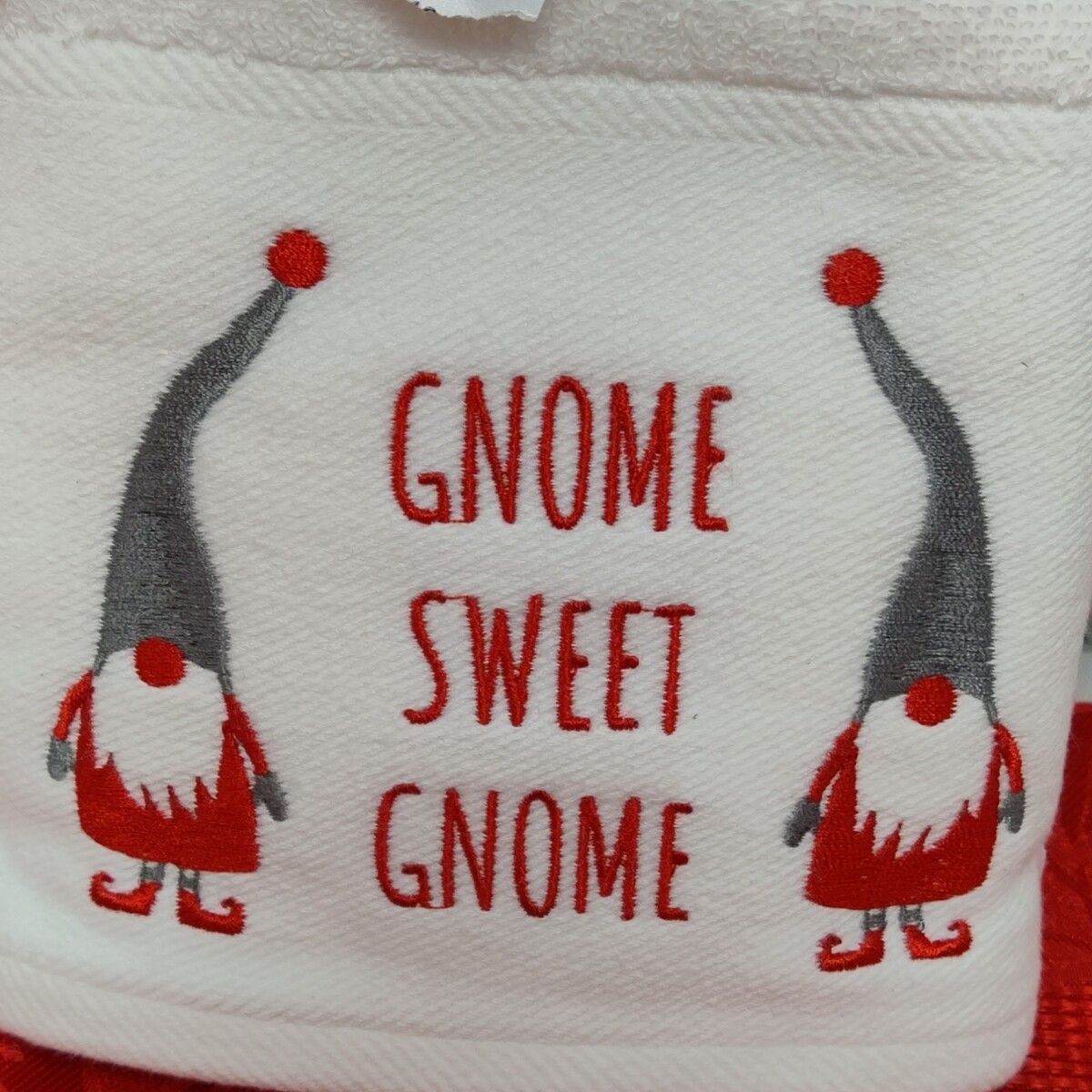2X Christmas Hand Towels 2 Pc Set White Gnome Sweet Gnome 100% Cotton NWT