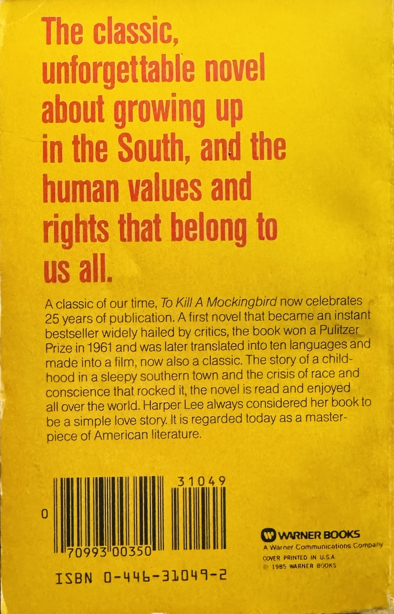 To Kill a Mockingbird 25th Anniversary Edition 1985 (Warner Books Paperback)