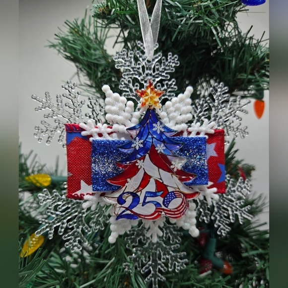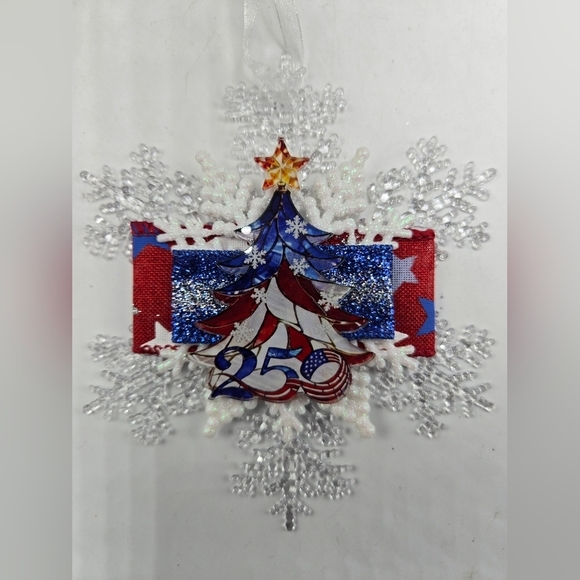 NWT OOAK United States 250th Anniversary Ornament Snowflake USA Patriotic America Freedom Holiday Christmas Seasonal Decor Handmade