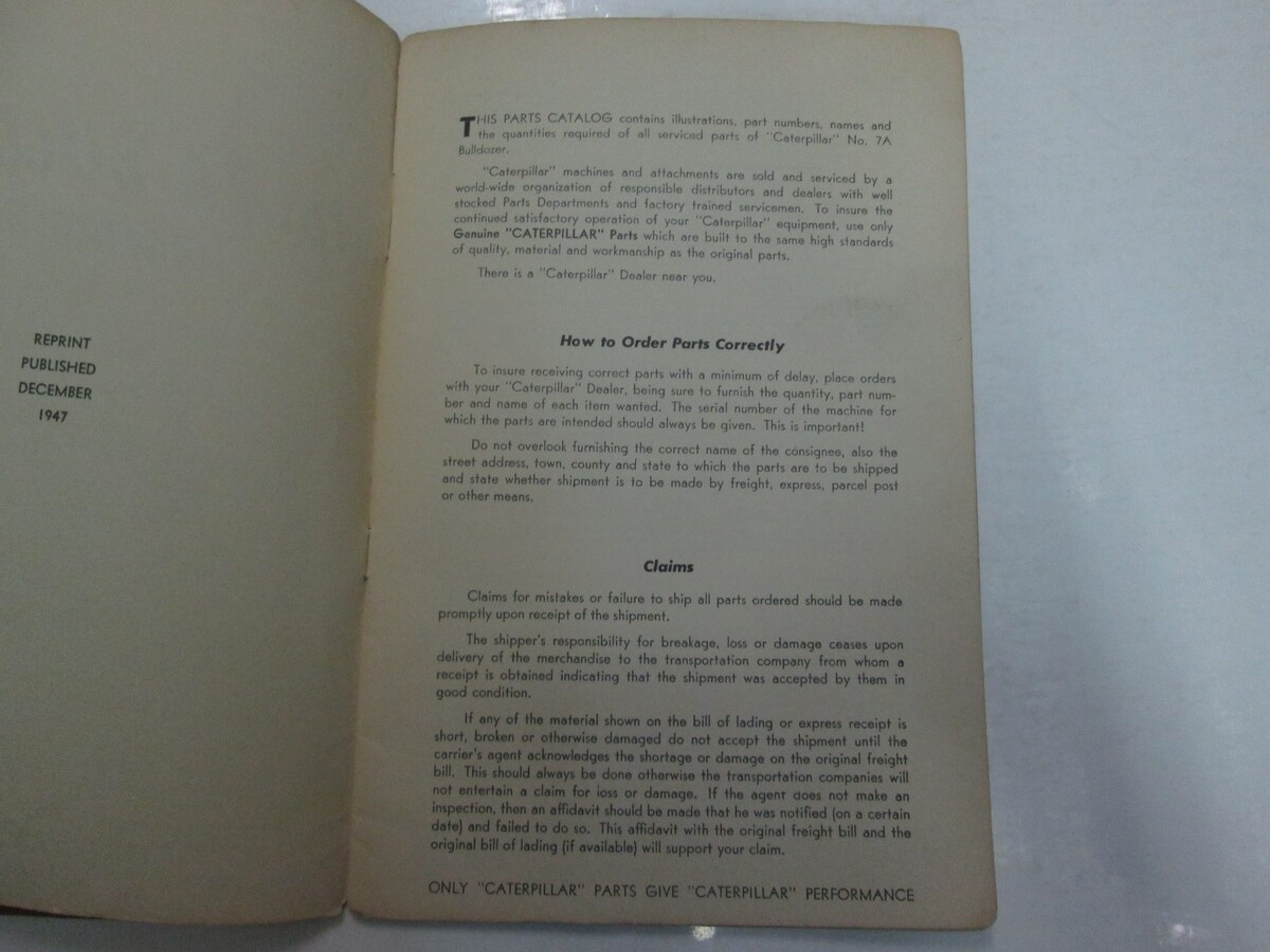 Caterpillar N° 7A Bulldozer Pesca Lama Parti Catalogo Manuale Damaged 6A501 Up