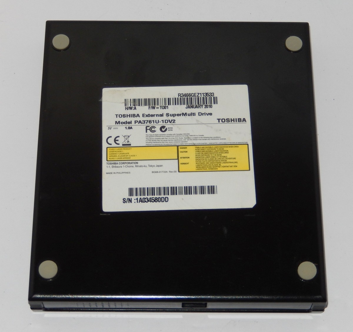 For Sale is a Toshiba PA3761U-1DV2 External Slim DVD- Rom Drive USB CD-R DVD-R DVD+R Writer Reader Tested Working. it in good used condition as seen in the pictures provided what you see is what you will receive. Has been tested and works. Please ask Any and All Questions prior to purchasing. Fast Same or Next day shipping with Free Delivery Confirmation within the U.S. Payment Due within 7 days of purchase (if you need more time please let us know In advance) we love to combine shipping is always a Yes and Most of the time Additional Items Ship for free.