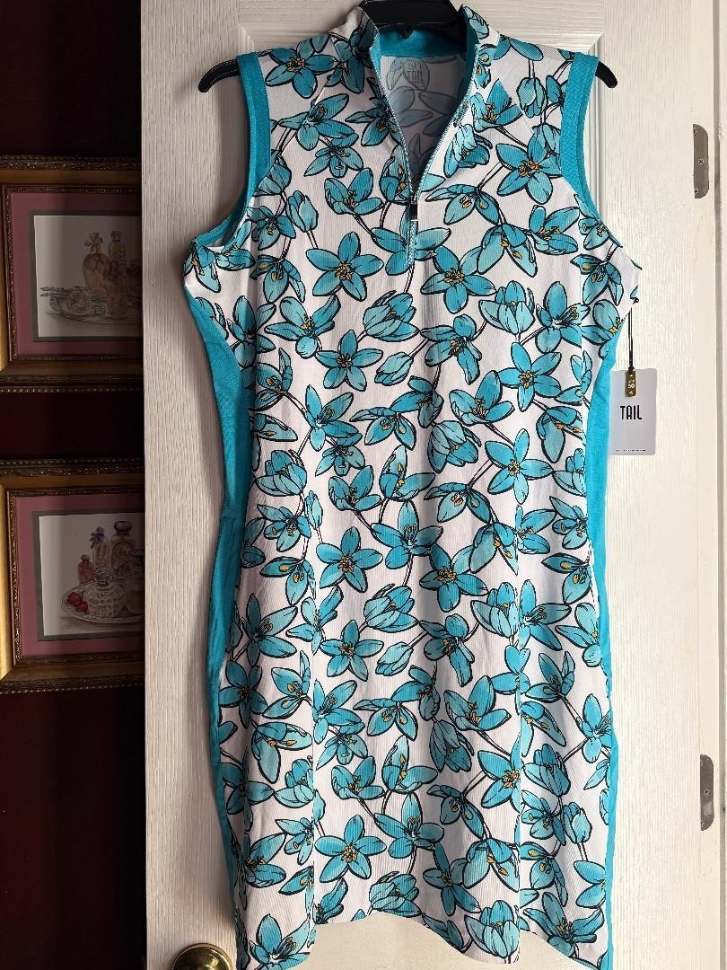 NWT TAIL Activewear Turquoise Aqua Amaryllis Sleeveless Mock Golf Dress - Size L