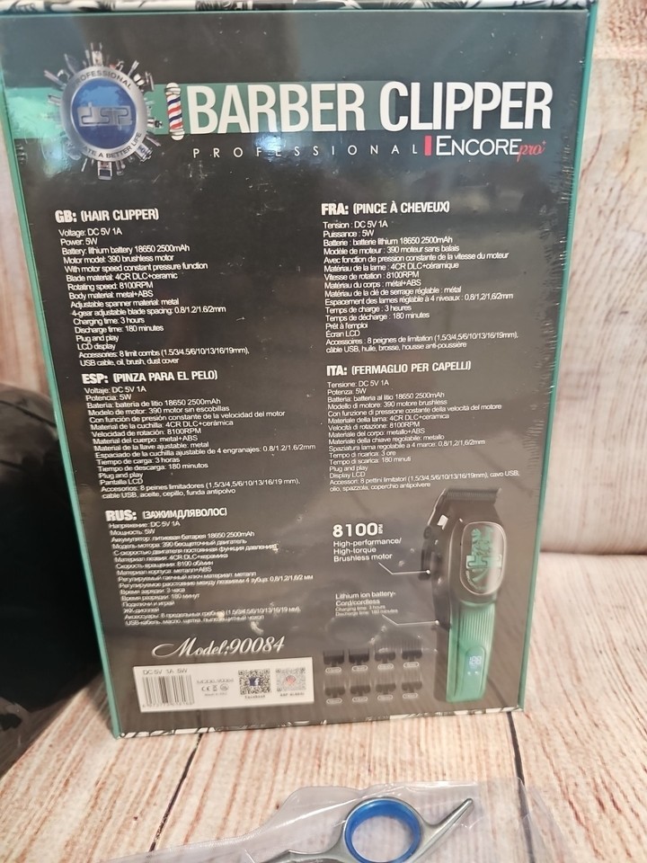 The DSP Professional Hair Clipper for Men is a high-quality grooming tool featuring a brushless motor with 4CR DLC+Ceramic Blade. This innovative technology provides powerful and efficient cutting performance while ensuring a smooth and precise finish. Designed specifically for men, this hair clipper from DSP is perfect for achieving a well-groomed and stylish look at home or in a professional setting. With the brand's reputation for quality and precision, this product is a reliable choice for maintaining a well-trimmed beard or hair.
