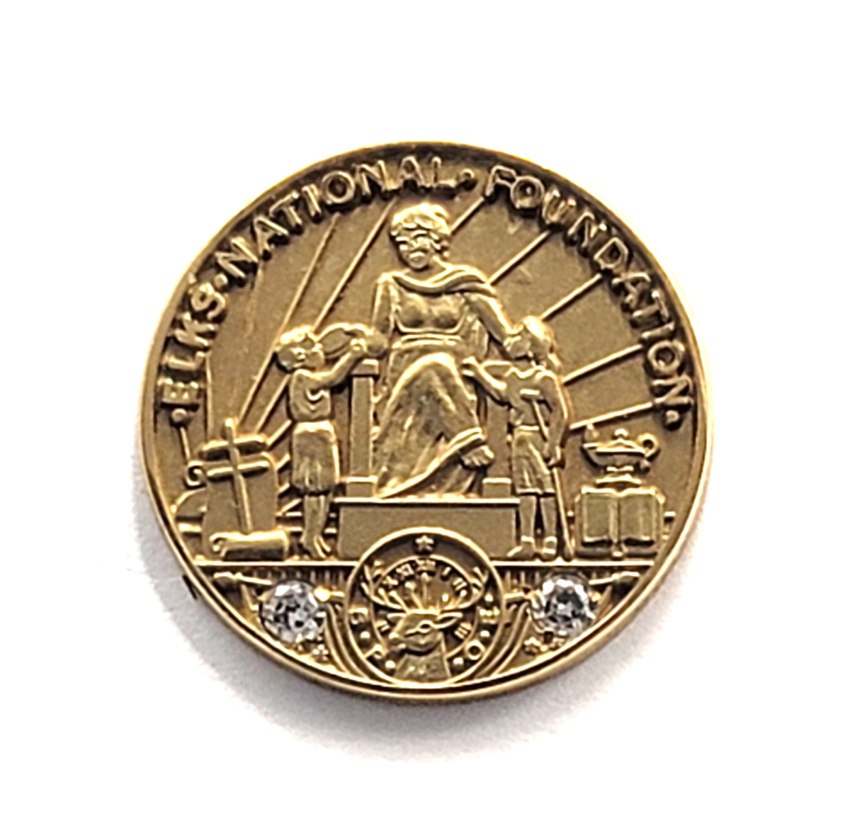 Elks National Foundation ENF Pin Tie Tack Gold Tone Rhinestone BPOE Fraternal