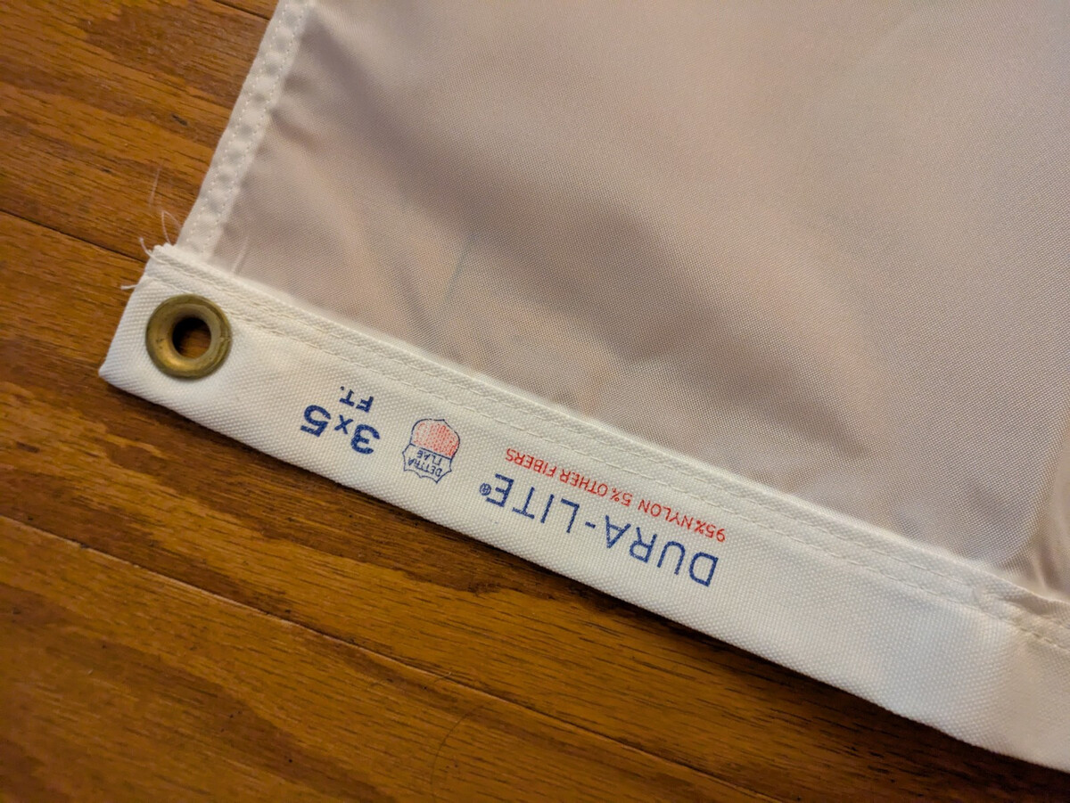 The vintage National Poland Dura-Lite Nylon Flag is 3 x 5 ft and made in the United States by Dettra Flag USA. It comes new in box.