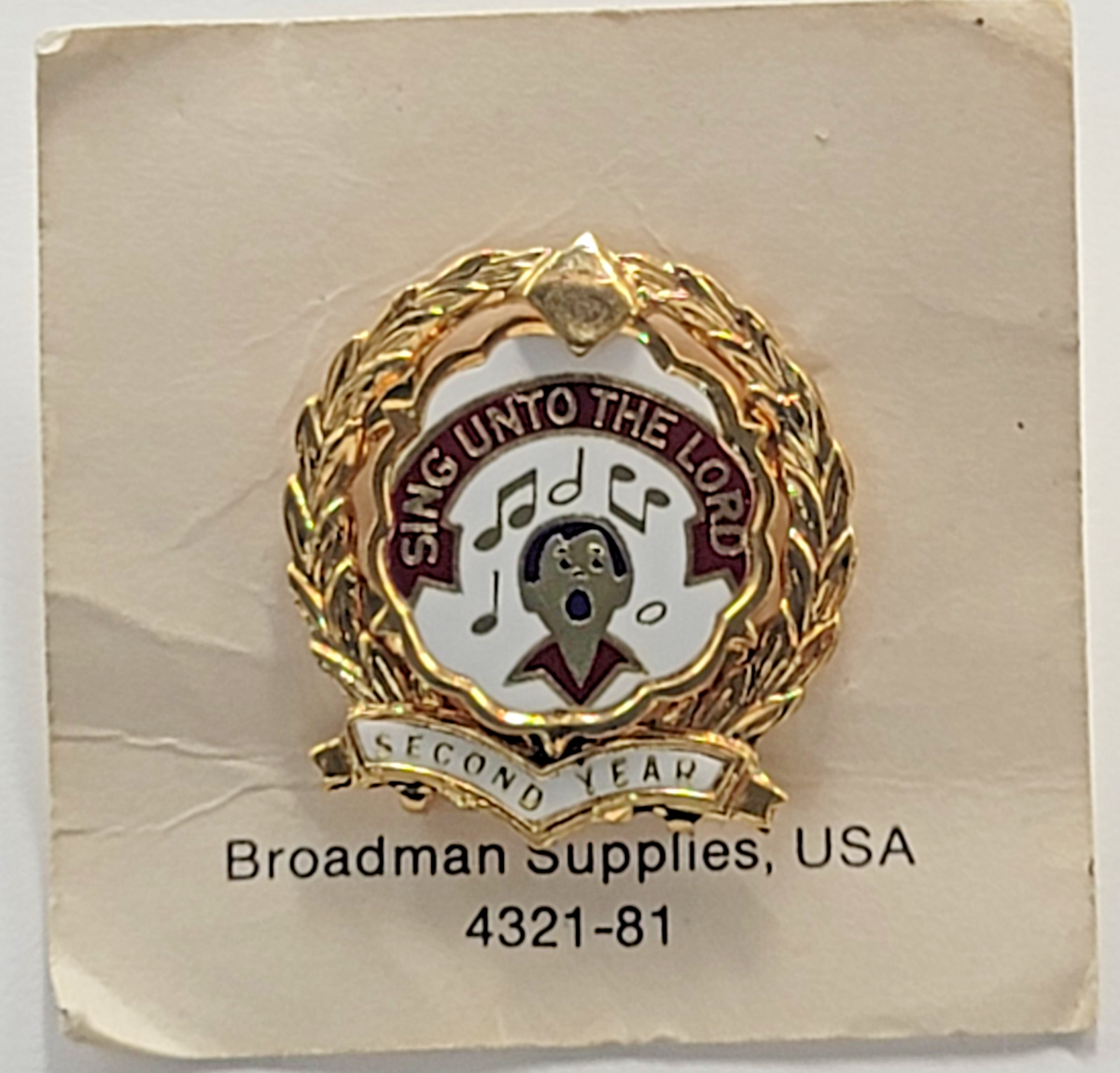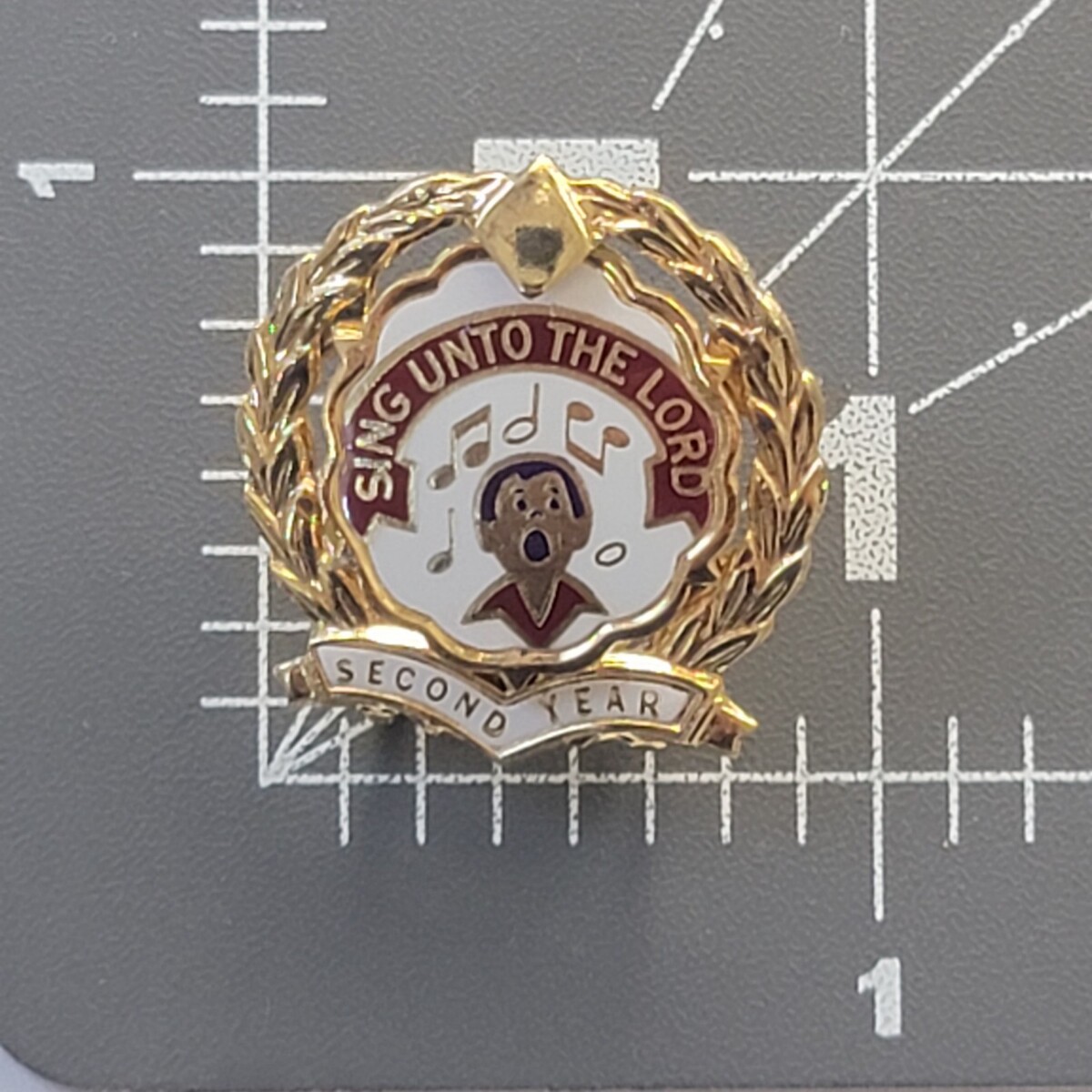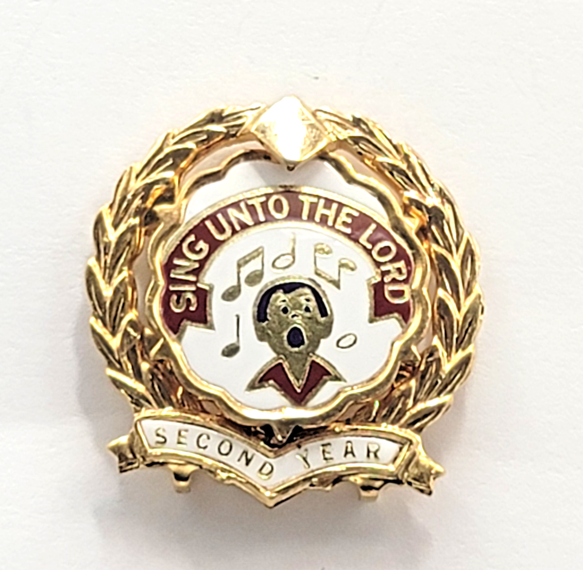 Sing Unto the Lord Second Year Choir Award Pin Wreath Enamel Church Religious