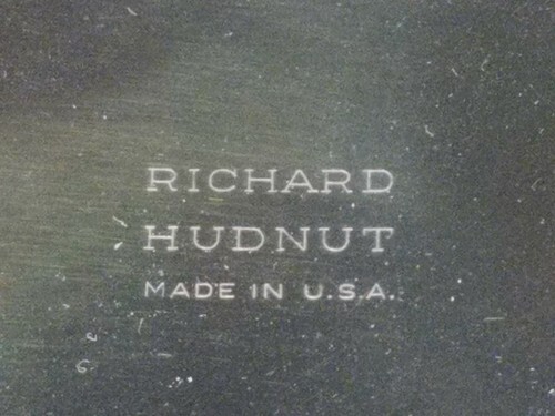 A vendre est un vintage Richard Hudnut Compact dans un sac a poussiere avec un design Sun Ray aux tons dores sur le devant et un design circulaire au dos. Marque Richard Hudnut made in USA a l'interieur et eventuellement monogramme sur le devant. Il a aussi un metal separateur a l'interieur. Le fermoir fonctionne bien. L'exterieur et l'interieur sont tres bons a l'exception de petites taches sombres sur le miroir. A un sac en tissu d'origine.