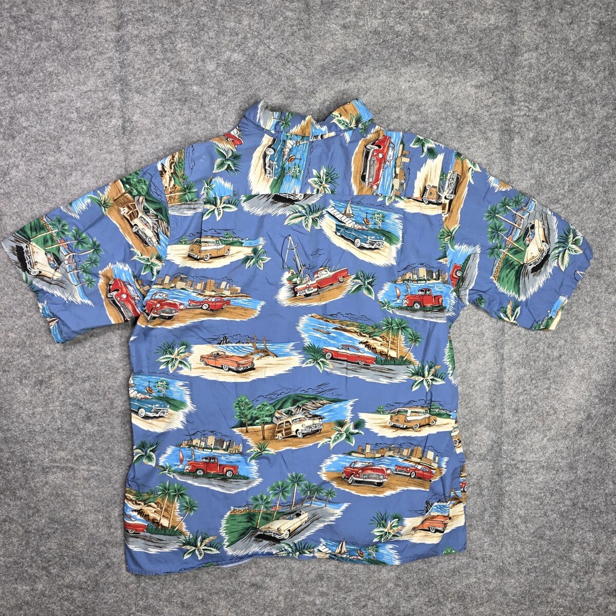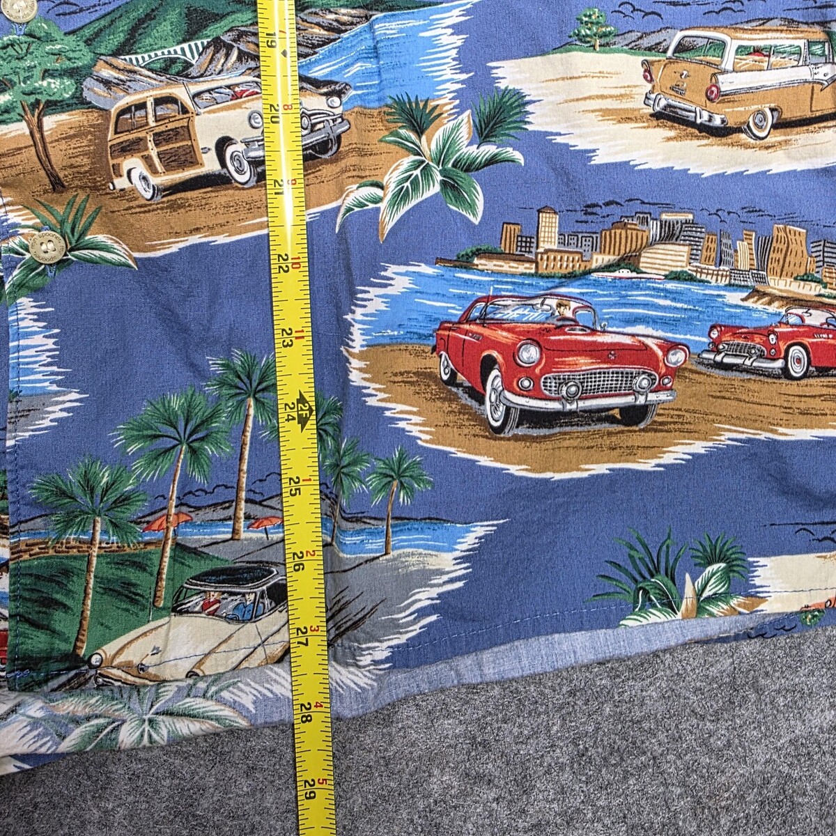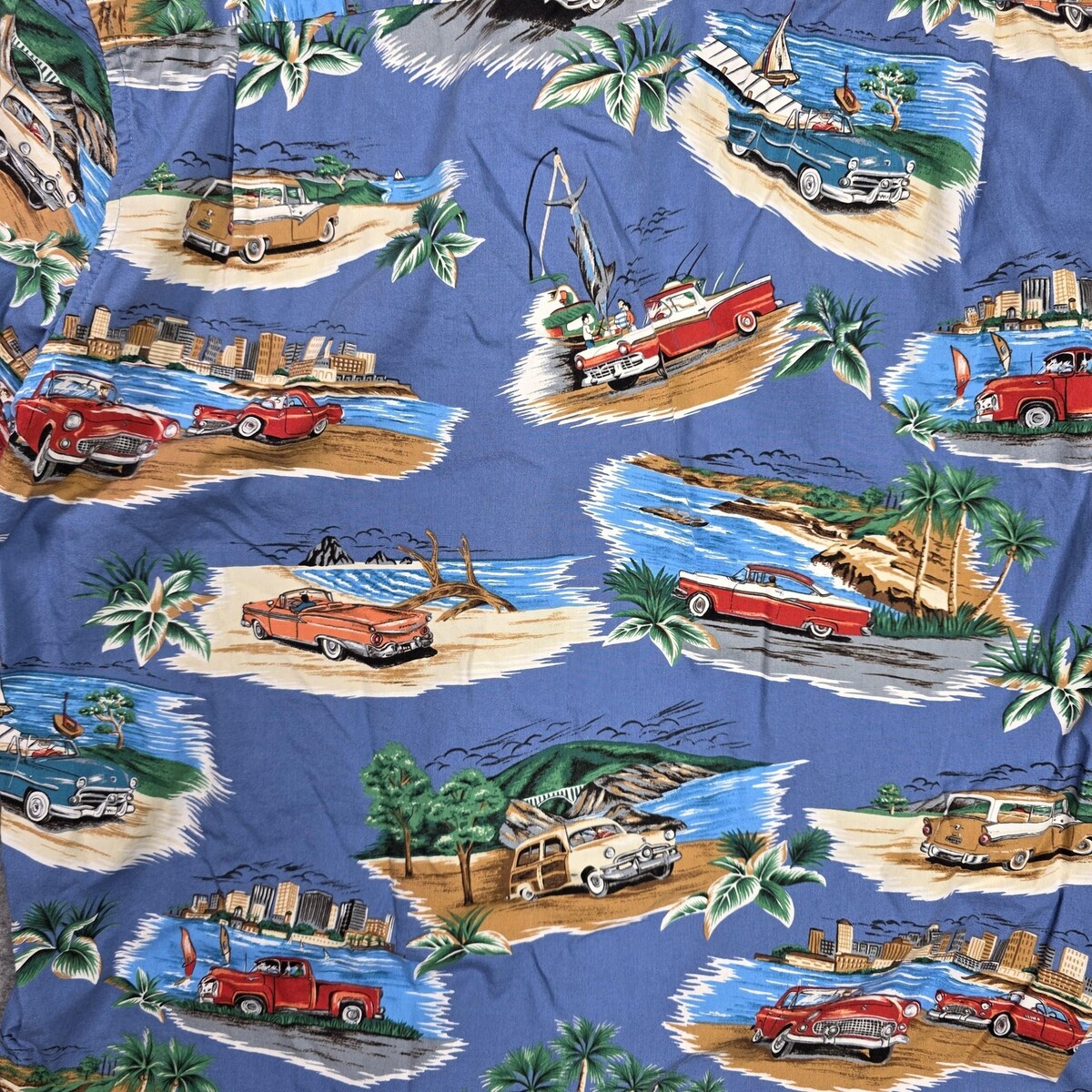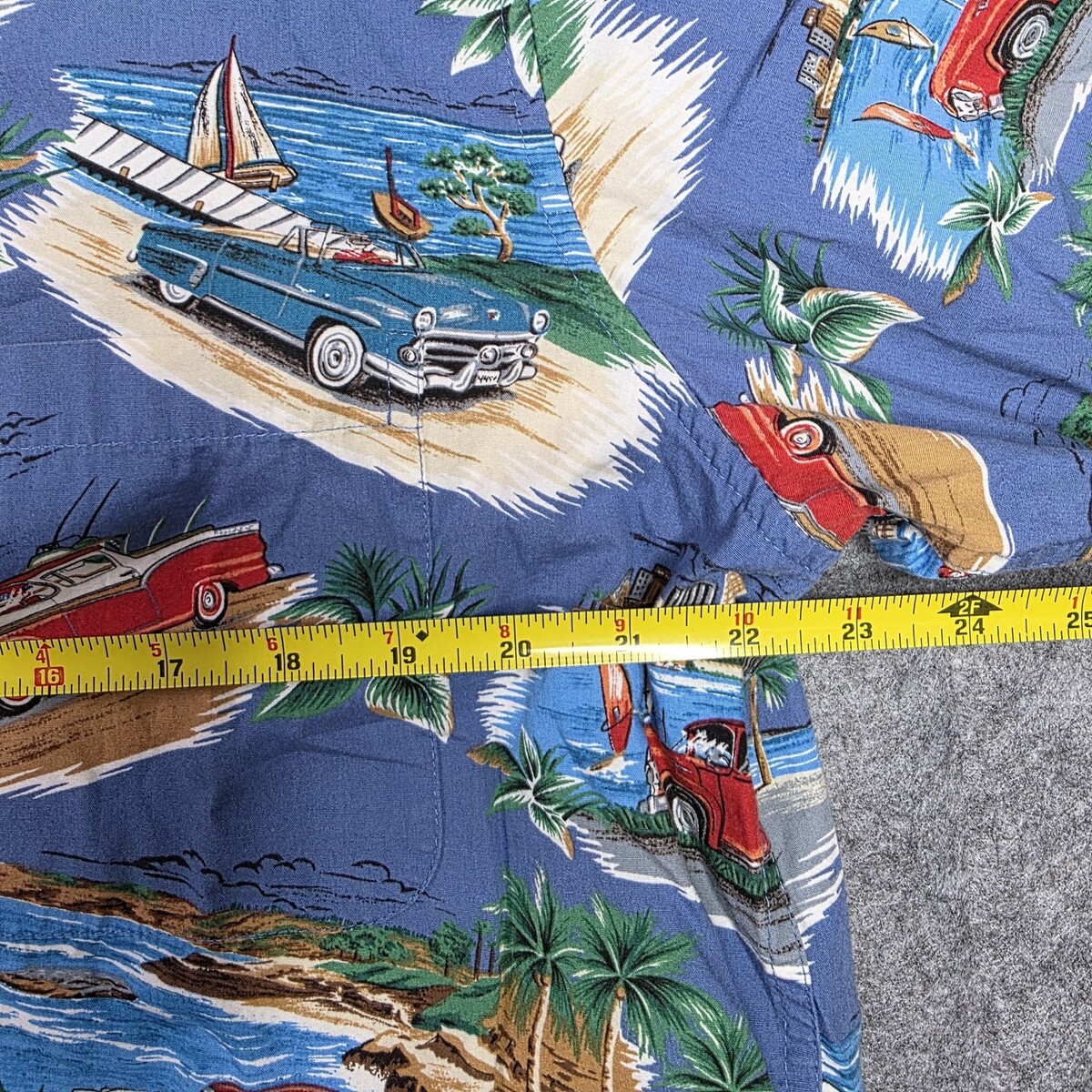 Reyn Spooner Hawaiian Shirt Mens Large Blue Classic Car Print 100% Cotton Aloha
