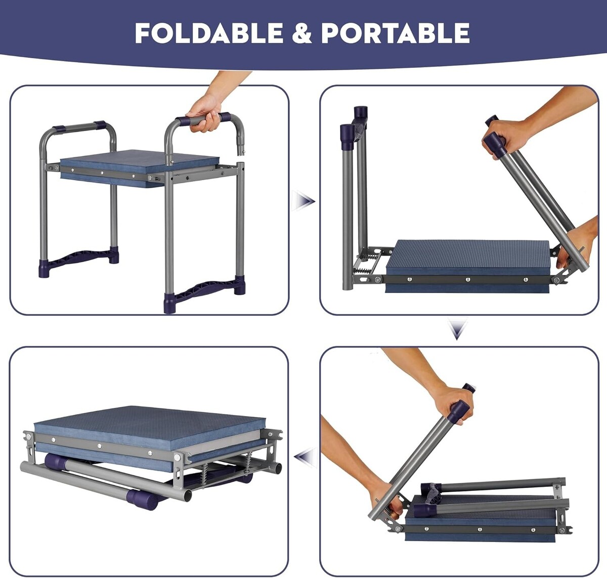 Sturdy Durable Foldable: Made with heavy-duty steel, our garden kneeler and seat locks open to support up to 380 lb. It is compact and portable, easily stored beside your garden bench or hung on the wall in seconds.