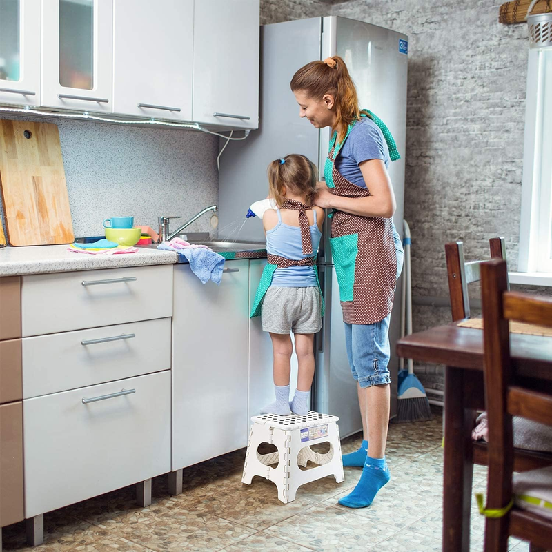 Quality Guarantee - Keep using high quality materials to ensure the best quality. Our folding step stool has been approved by EN 14183 Certificate, absolutely safe for your families.(Note: For safety's sake, when we need to stand on it and reach up a high place. Please standing on the stool must keep both feet on the middle of the stool and don't shake wildly.)