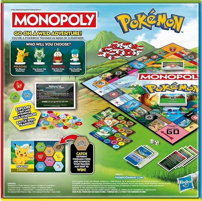 RACE TO CATCH WILD POKEMON: Go on an exciting Pokemon-catching adventure with family and friends in this Monopoly Pokemon Edition game, featuring locations and characters inspired by the Pokemon universe