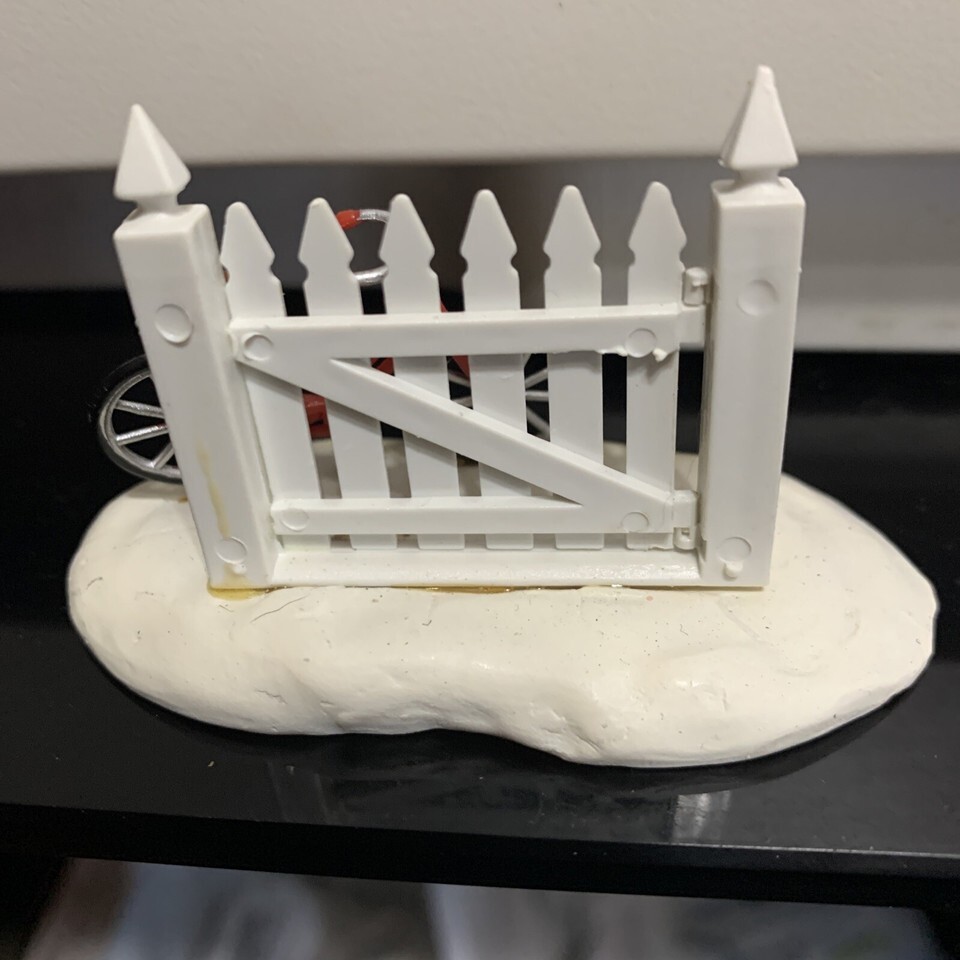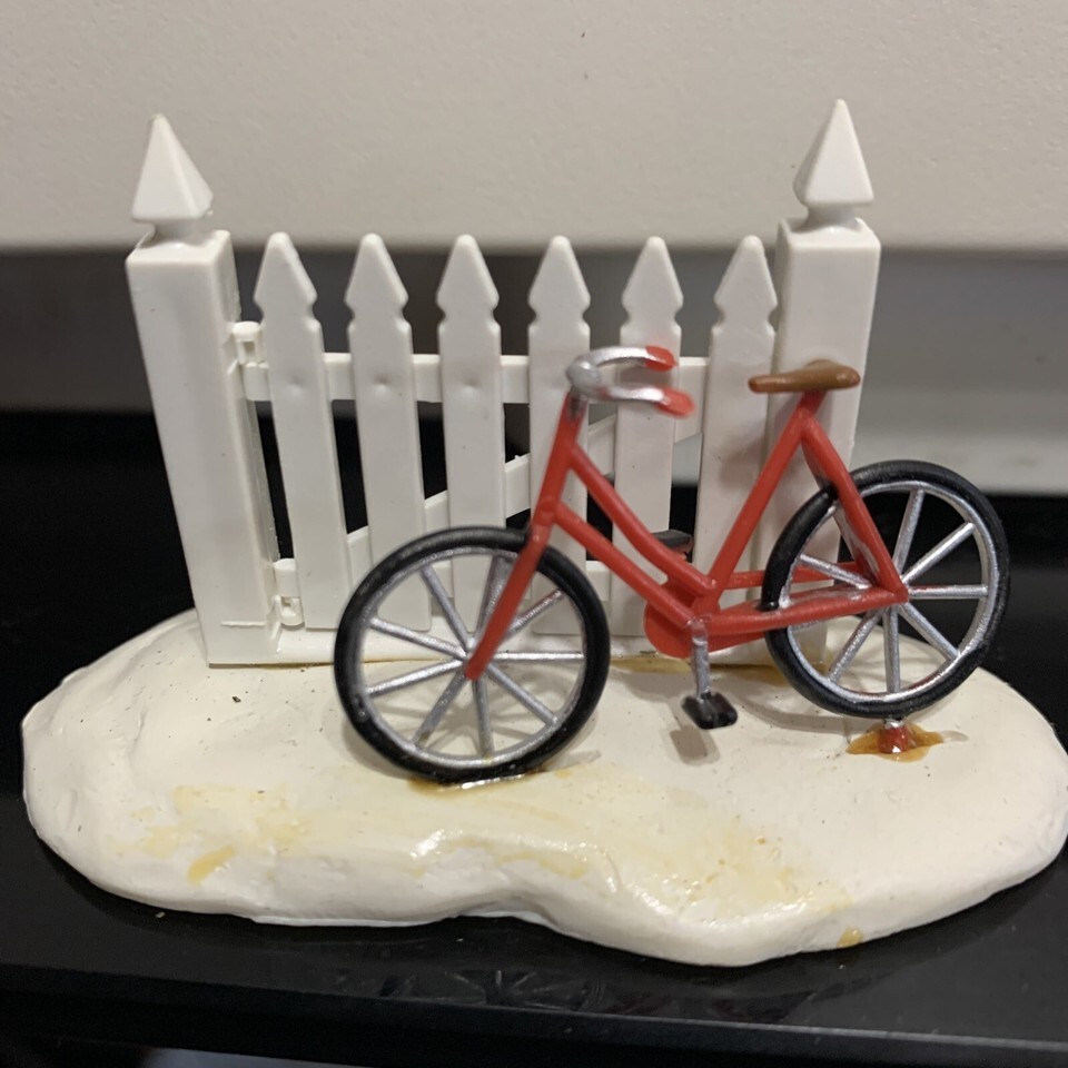 Lemax Christmas Village Figurine Red Bicycle Bike Leaning on White Wood Fence