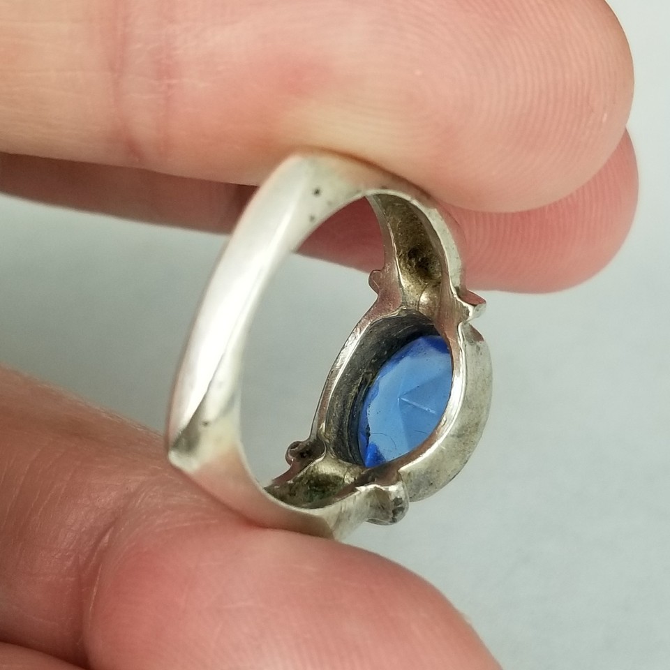 sterling silver 925 chunky mid century blue topaz womens ring size 7.5 6.3g