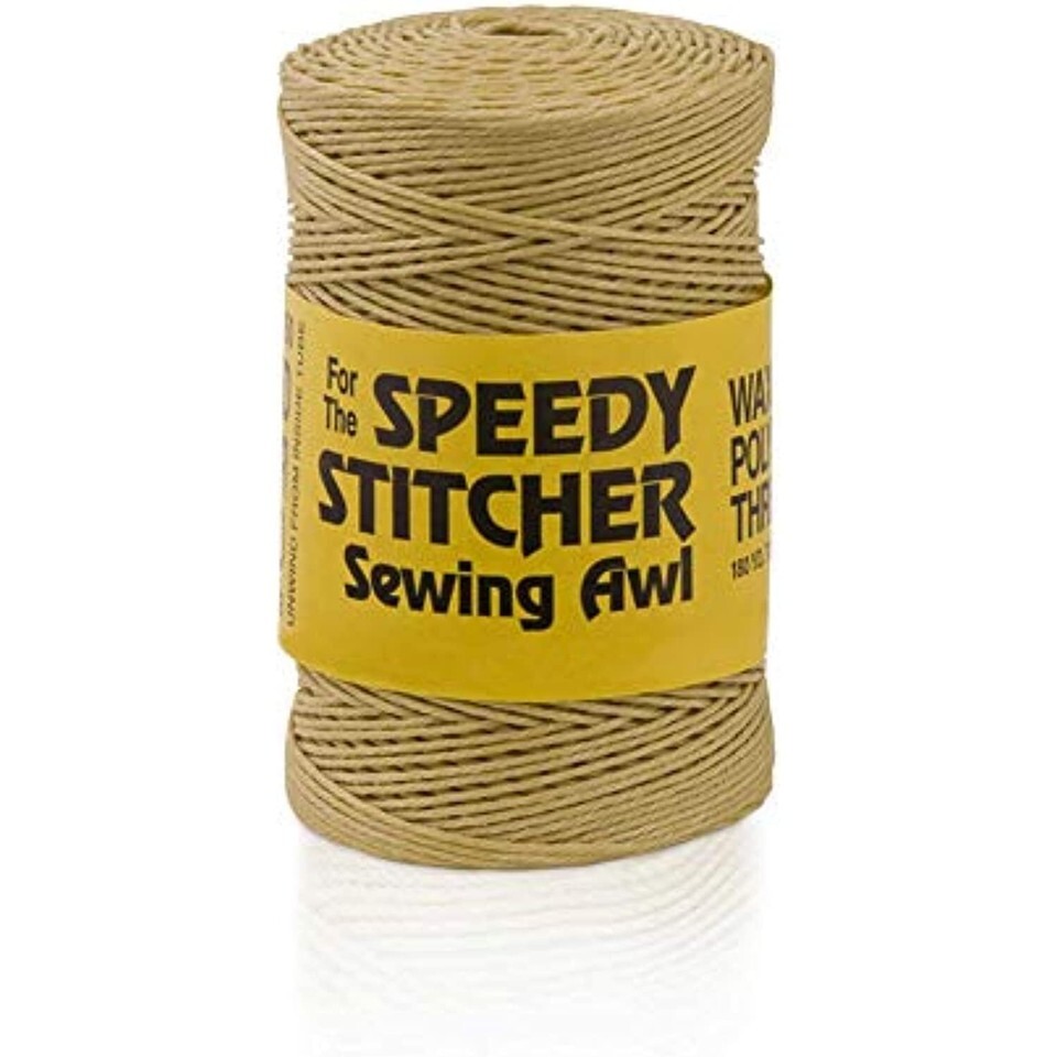 This high quality sewing awl is more like a hand-held sewing machine. The thread is contained right in the handle of the awl for convenience. The kit comes with the Speedy Stitcher sewing awl, a bobbin wound with 14-yards of waxed coarse thread, 4 needles - 2 straight and 2 curved, a 180-yard tube of additional waxed coarse thread and use instructions.