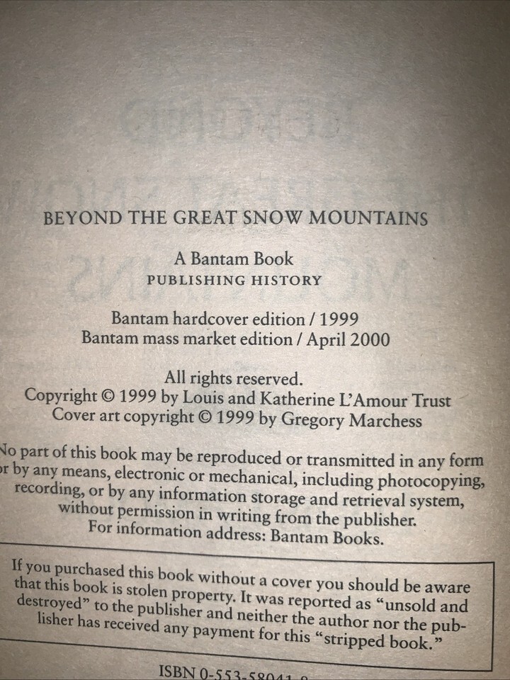 "Beyond the great snow mountains" Louis L'Amour paperback bantam book