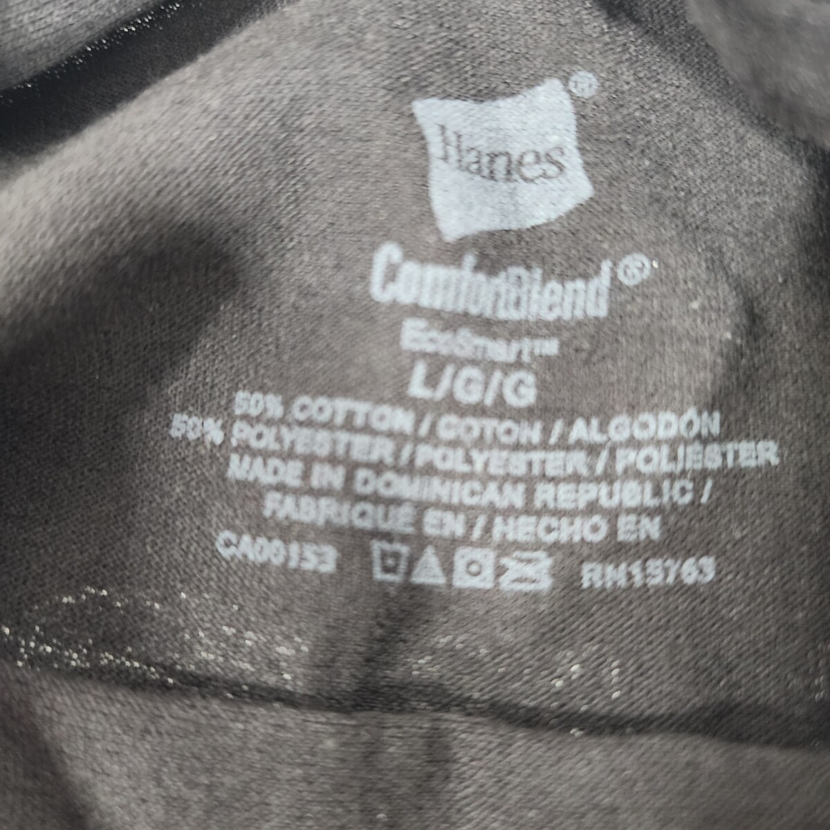 The product is a new men's size large black t-shirt featuring the ARCA Menards Series NASCAR branding. Made by Hanes, this shirt is perfect for fans of auto racing, specifically NASCAR. The shirt is designed for men and is a stylish way to show support for the sport and the series.