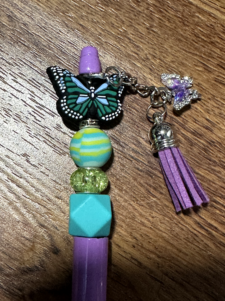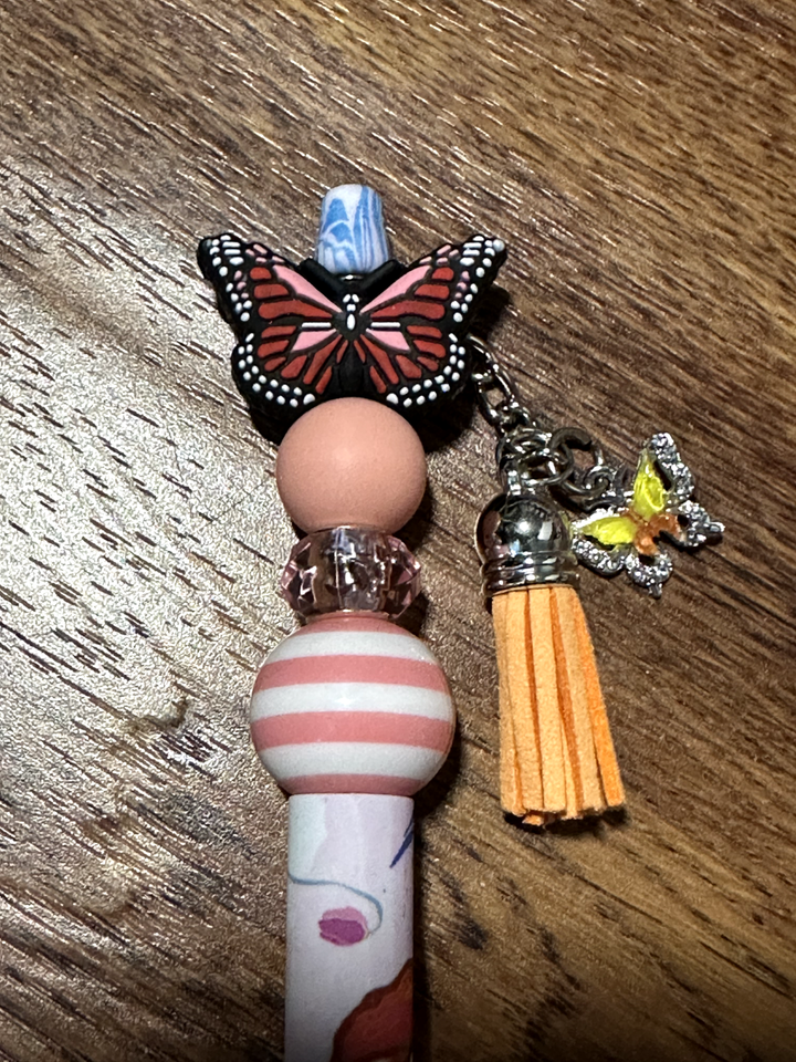 beaded pens, each featuring a beautiful butterfly focal bead and