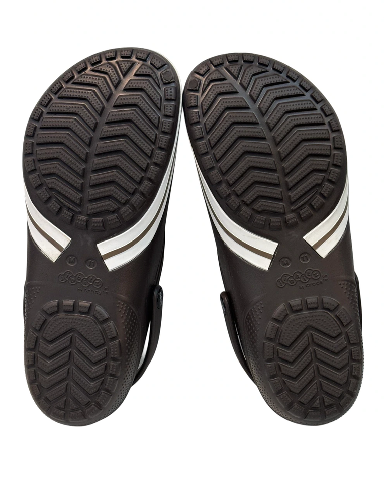 Crocs Men 11 Brown Clog w/ Strap Jibbitz Footwear